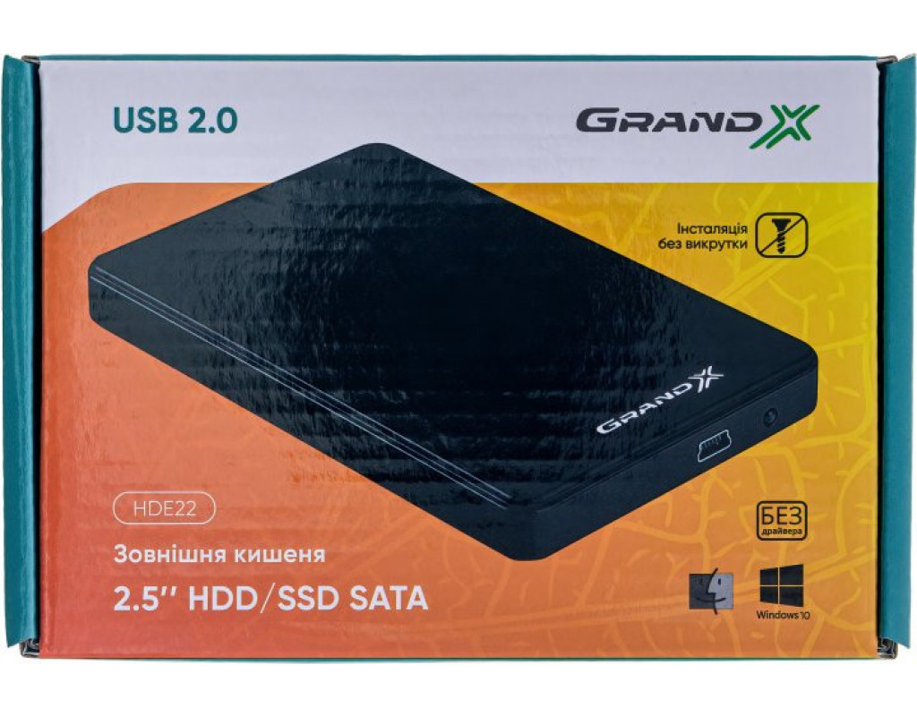 Карман зовнішній Grand-X HDE22 - пристосування для забезпечення мобільності комп'ютерного вінчестера, здатне перетворити жорсткий диск в переносний накопичувач інформації. Переваги такого способу перенесення даних з одного комп'ютера на інший особливо очевидні при значному обсязі інформації. Уявіть, що потрібно скопіювати, скажімо, 200 гігабайт даних, а в комп'ютерів немає зв'язку по локальній мережі або через інтернет. Використання в цьому випадку флешки або DVD-матриць видається справою дуже виснажливим і тривалим, а кишені для жорстких дисків дозволять провести перенесення даних без зайвих витрат часу і нервів. Grand-X HDE22 підтримує роботу з 2,5-дюймовими SATA HDD / SSD дисками, максимальна висота яких не перевищує 12,5 мм. А для підключення новинки до комп'ютера використовується зовнішній високошвидкісний інтерфейс USB 2.0. |