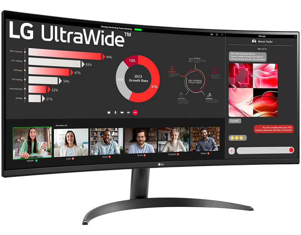 Бачити більше, робити більше UltraWide QHD (3440x1440) із кривизною 1800R і співвідношенням сторін 21:9 чудово підходить для роботи, оскільки може одночасно відображати різні програми. Просте налаштування багатозадачності 34WR50QK дає змогу одночасно переглядати вміст із двох комп’ютерів завдяки функції Картинка біля картинки, що підвищує продуктивність роботи. Застосунок LG Switch - Перемикайтеся швидко Застосунок LG Switch допомагає оптимізувати монітор для вашої роботи та життя. Ви можете легко розділити весь дисплей на 6 частин, змінити дизайн теми або навіть запустити платформу відеодзвінків за допомогою відповідної гарячої клавіші. HDR10 із sRGB 99% - Побачте неймовірні кольори Технологія HDR тепер застосовується до різноманітного контенту. Цей монітор підтримує стандарт HDR10 (High Dynamic Range), заснований на колірному охопленні sRGB 99%, що забезпечує особливий рівень кольору та яскравості. Це дозволяє користувачам насолоджуватися насиченими та драматичними кольорами контенту. Ергономічний дизайн - Легко та зручно Досягніть оптимального положення з ергономічною підставкою: просте налаштування одним кліком і легке регулювання нахилу для вашого ідеального перегляду. |