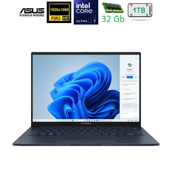 ASUS Zenbook 14 OLED UX3405CA — ультрапортативний ноутбук, який виводить сучасні технології на абсолютно новий рівень. Лінійка Zenbook особлива своєю естетикою, має компактні габарити, що дозволять помістити пристрій в будь-яку сумку чи рюкзак. Дисплей ASUS Lumina OLED зробить кожну мить перегляду неймовірною. 14-дюймовий екран з роздільною здатністю 1920x1200 та частотою оновлення 60 Гц відтворює кольори з високою точністю та контрастністю для візуальних ефектів, потрібних професіоналам, тому є ідеальними для відтворення ваших найкреативніших ідей. Виконуйте будь-які завдання без зайвих зусиль завдяки багатозадачним можливостям ноутбука з підтримкою штучного інтелекту. Завдяки вбудованому в процесор Intel Core Ultra 7 255H ядру NPU застосунки на основі ШІ працюватимуть надзвичайно швидко. Швидкісний SSD-накопичувач обсягом 1 ТБ, містка оперативна пам’ять та модуль Wi-Fi 802.11be дозволять працювати швидко та максимально ефективно, залучаючи всі ресурси техніки. Ергономічна клавіатура з ексклюзивною технологією Quiet Keyboard, що усуває нав’язливі шуми, дозволить вам працювати з текстом та числами. Для полегшення роботи наявний тачпад з віртуальною цифровою клавіатурою NumberPad 2.0. Незалежно від того, що ви слухаєте, кришталево чистий звук, який видають суперлінійні динаміки, інтелектуальний підсилювач і технологія ASUS Audio Booster, подарує вам справжню насолоду. ASUS Zenbook 14 OLED — легке рішення, навіть складних задач. |
