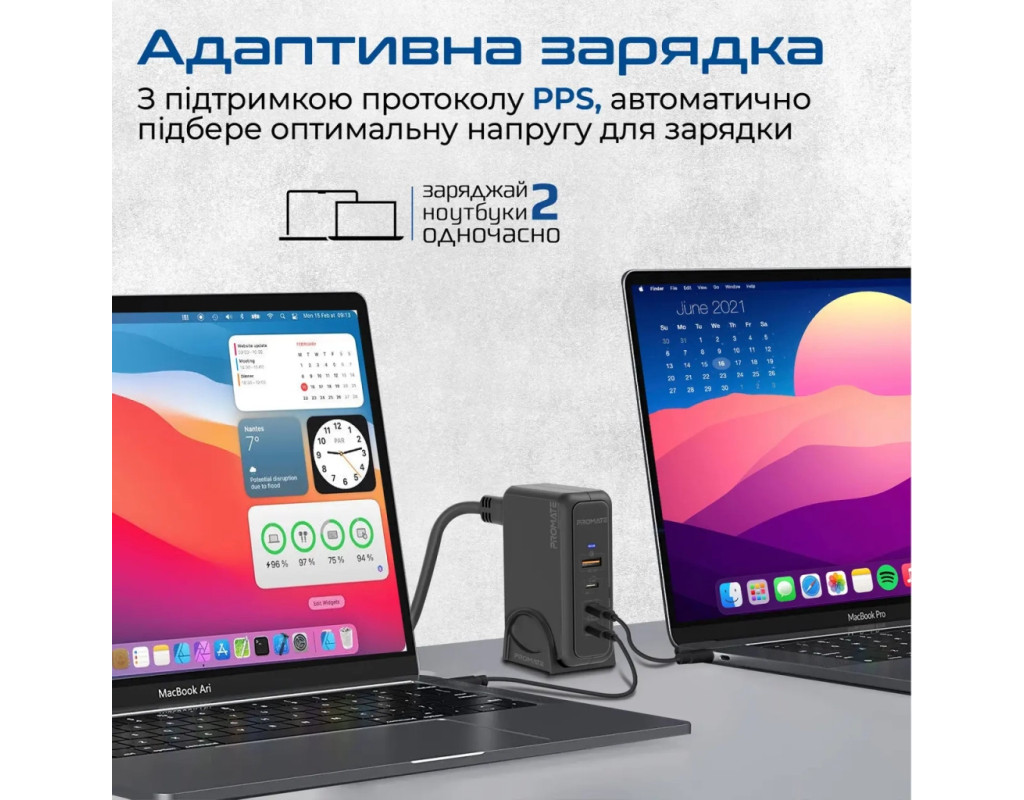 Promate GaNPort-140W - мережний зарядний пристрій з підтримкою протоколу PPS та технологій Power Delivery 3.1, Quick Charge 3.0. Займає мінімум місця та видає максимум енергоефективності! Той випадок, коли один гаджет для зарядки чотирьох твоїх пристроїв. Особливості: - Технологія GaNFast: Завдяки використанню компонентів з нітриду галію, енергоефективність підвищилася на 80%, а габарити зменшилися на 55% у порівнянні з типовими зарядними пристроями.