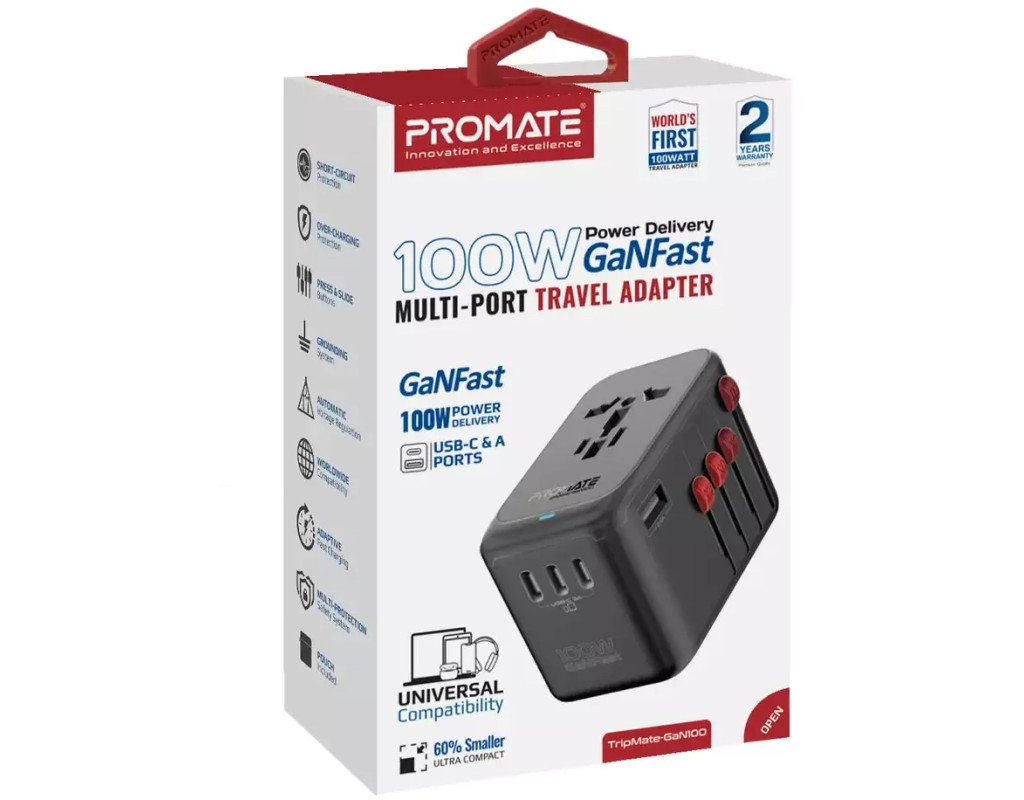 | Зустрічайте зарядний пристрій Promate TripMate-GaN100 — інноваційний адаптер для сучасних активних користувачів, які цінують якість, зручність і надійність. Цей універсальний пристрій живиться від мережі та підтримує широкий спектр гаджетів: від компактних фітнес-браслетів до потужних ноутбуків, а також екшн-камери, смарт годинники та геймпади. Однією з видатних особливостей є використання технології GaNFast, що підвищує енергоефективність на 40% та зменшує тепловиділення на 50%, забезпечуючи стабільну і безпечну роботу. Інтегрований чип Smart IC захищає ваші пристрої від перегріву та надмірного заряджання, гарантуючи безпеку. Завдяки п'ятьом USB-портам (1 x USB, 4 x USB Type-C), ви можете одночасно заряджати всі свої пристрої. Порт USB-C з потужністю 100 Вт забезпечує швидку зарядку для ноутбуків, тоді як інші порти підходять для смартфонів, планшетів і смартфонів. Компактний розмір 50x82x55 мм робить його ідеальним для подорожей. Міцний корпус виготовлений з вогнетривкого ABS пластику, що підвищує довговічність. Обираючи Promate TripMate-GaN100, ви отримуєте швидке та безпечне заряджання будь-де. |