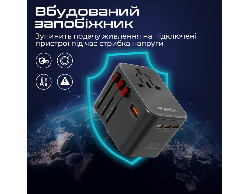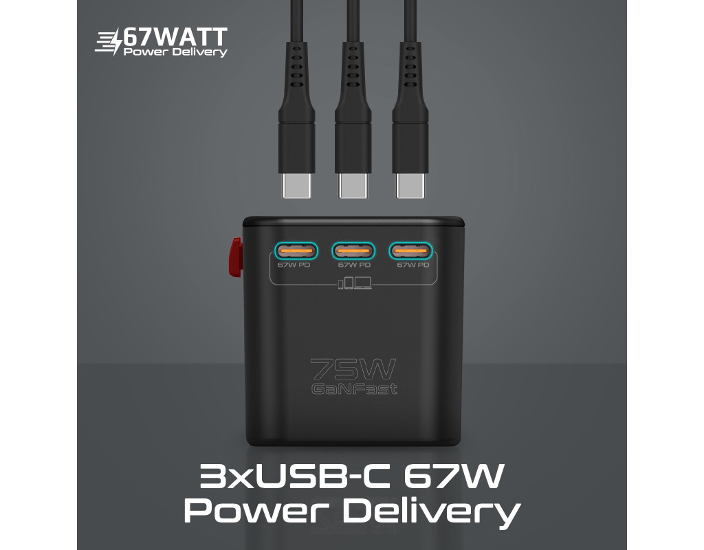 | TripMate-GaN75 – покращена версія мережевого перехідника TripMate-GaN65 від Promate. Ще більше потужності, ще більше портів у компактному корпусі завдяки GanFast технології. Заряджайте все що завгодно під час подорожей світом.