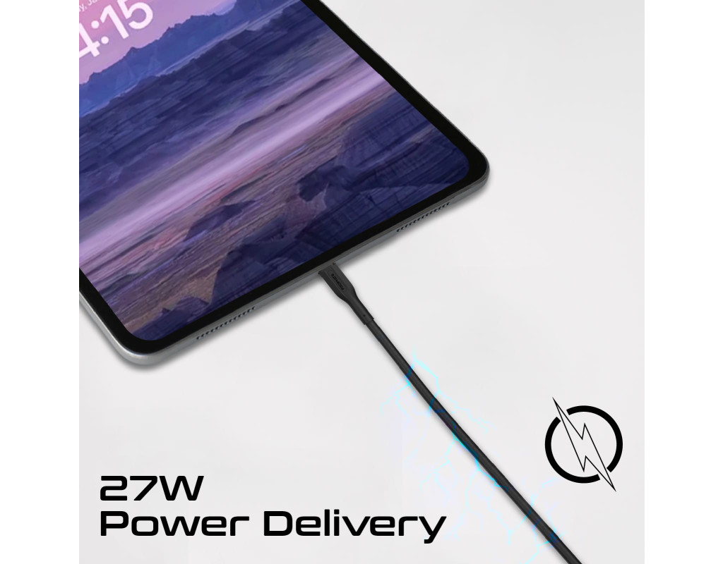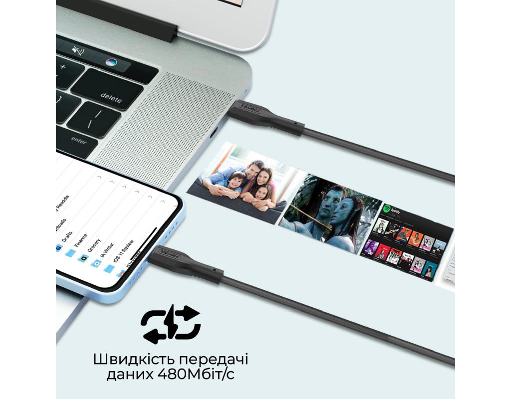 Три кабелі різної довжини: Обирай, яка саме довжина кабелю тобі необхідна, 30 см, 120 або 200 см. Power Delivery: Заряджай смартфон, планшет або навушники на потужності до 27 Вт (9В/3А, 12В/2.25A, 20В/1.35A). Стабільна синхронізація: Передавай дані на швидкості до 480 Мбіт/с. Якісний всередині: Кабель з безкисневої міді, екранований спеціальною фольгою. Надійний зовні: Силіконова оболочка в тканинному обплетенні витримує понад 25 000 підключень/згинань. Заряджай безпечно: Вбудований чіп Smart IC захистить твої пристрої від стрибків напруги, короткого замикання та надмірного заряджання. |