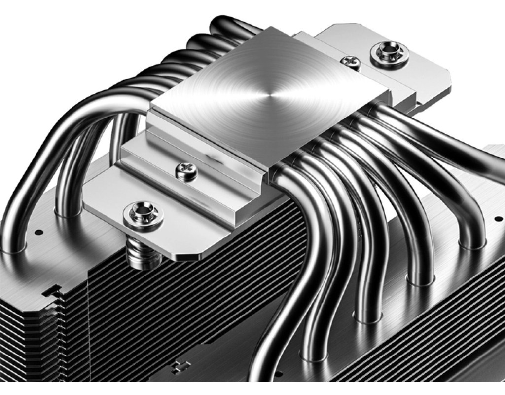 ID-COOLING FROZN A620 PRO SE ARGB — це інноваційний двобаштовий повітряний кулер, створений для ефективного охолодження потужних процесорів, забезпечуючи баланс між продуктивністю, тихою роботою та стильним дизайном. Кулер оснащений шістьма вдосконаленими 6-міліметровими тепловими трубками, які забезпечують максимальну теплопровідність, передаючи тепло в оптимальні місця на алюмінієвих ребрах. Використання технології проникнення ребер до трубок дозволяє мінімізувати тепловий опір і досягти стабільної роботи навіть під великим навантаженням. Спеціальна конструкція мікрохвильових ребер збільшує площу для розсіювання тепла, що додатково підвищує ефективність охолодження. Він оснащений двома 120-мм вентиляторами із ШІМ-керуванням, який забезпечує оптимальний баланс між продуктивністю та рівнем шуму. Вентилятори працюють з мінімальним рівнем шуму 27.2 дБ навіть на максимальних обертах. Завдяки гідравлічному підшипнику і 5 спеціально розробленим лопатям, вони створюють потужний повітряний потік, гарантуючи стабільне охолодження. Мідна основа кулера припаяна до теплових трубок, що забезпечує чудовий тепловий інтерфейс, стійкий до тривалого термоциклування. Завдяки комбінації порошкових і пазових теплових трубок, кулер ефективно працює в будь-якому положенні корпусу — вертикальному чи горизонтальному, демонструючи високу продуктивність навіть для процесорів з високим TDP. ID-COOLING Frozn A620 Pro SE ARGB має стильний вигляд завдяки верхній пластиковій кришці, матовій наклейці з логотипом «FROZN» і натуральній алюмінієвій поверхні. Додатковою перевагою є підтримка ARGB-підсвічування, яке можна синхронізувати з материнською платою, щоб налаштувати візуальні ефекти відповідно до стилю вашої збірки. |