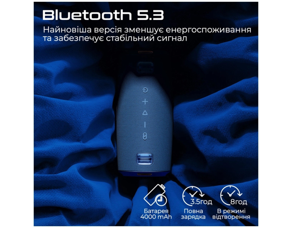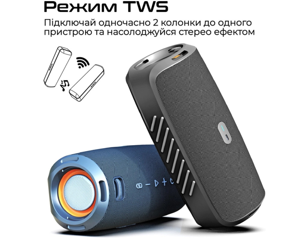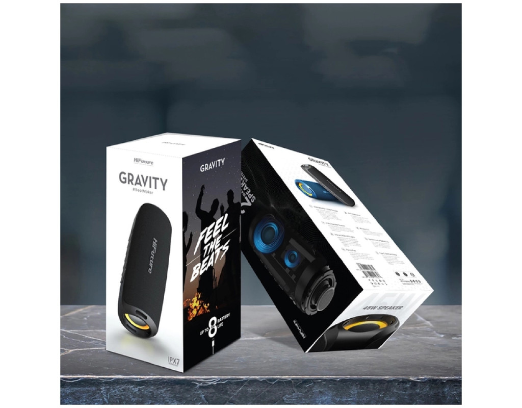 HiFuture Gravity - портативна Bluetooth колонка циліндричної форми. 2 динаміки сумарною потужністю 45W забезпечують насичений звук протягом 8 годин безперервної роботи, а корпус з вологозахистом дозволяє використовувати її в будь-яких умовах. Особливості: