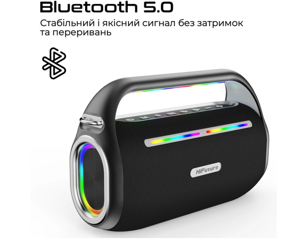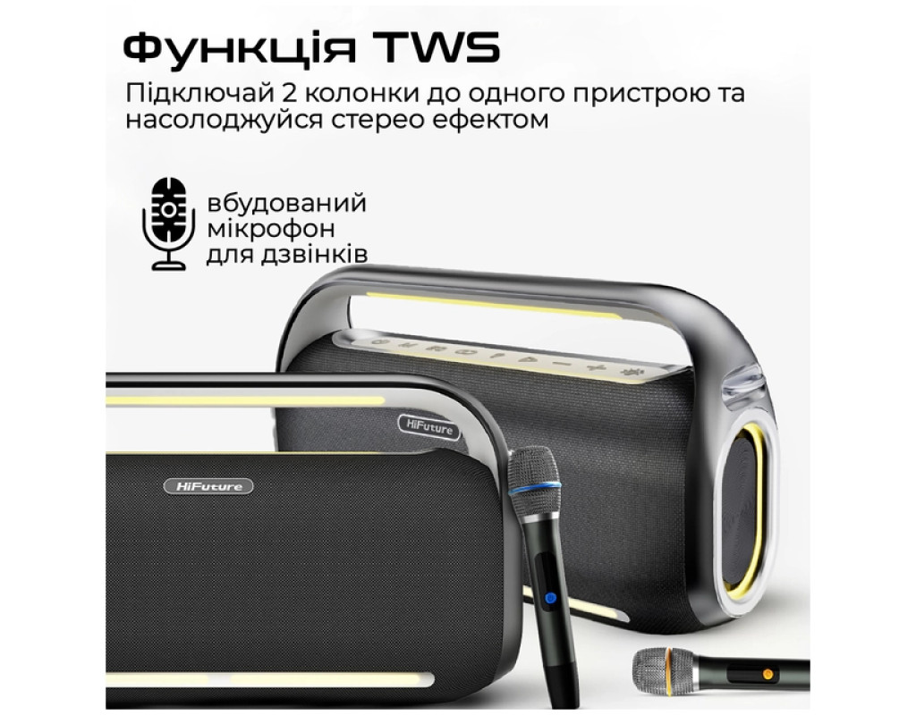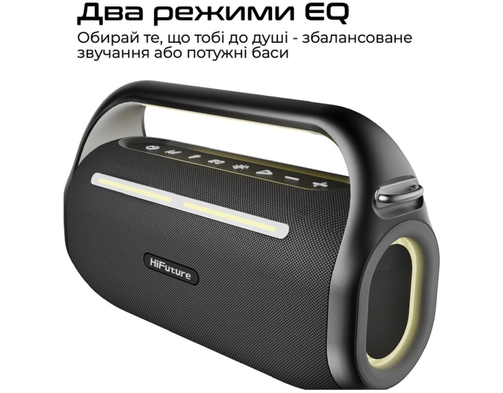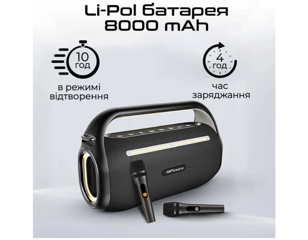 Musicbox100 - колонка с чотирма динаміками сумарною потужністю 70 W із нової лінійки від HiFuture. Оснащена режимом караоке, збільшеною автономністю та дистанційним керування для твоїх вечірок.