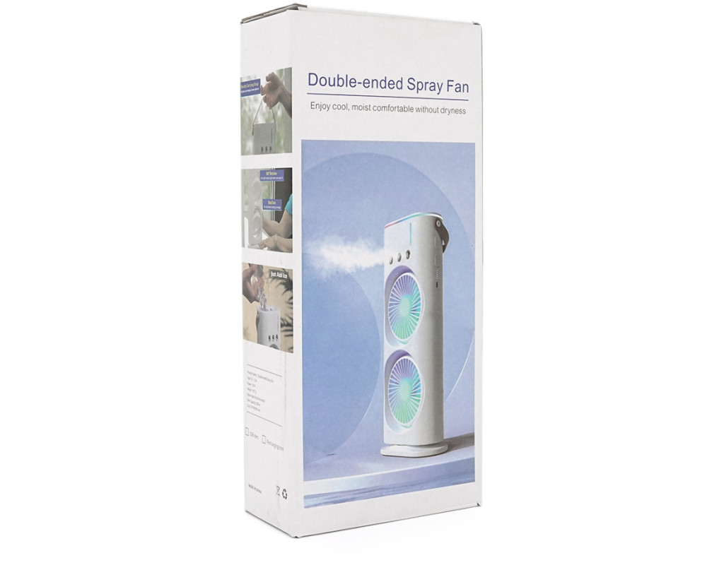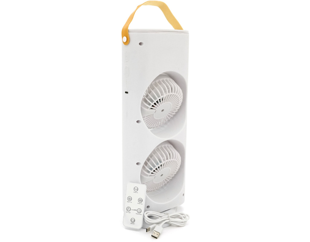 Портативний настільний вентилятор YT-1818 з охолодженням, 2*R*110мм, кут повороту 90°, 3 режими, вбудований акумулятор, USB кабель, пульт, Box