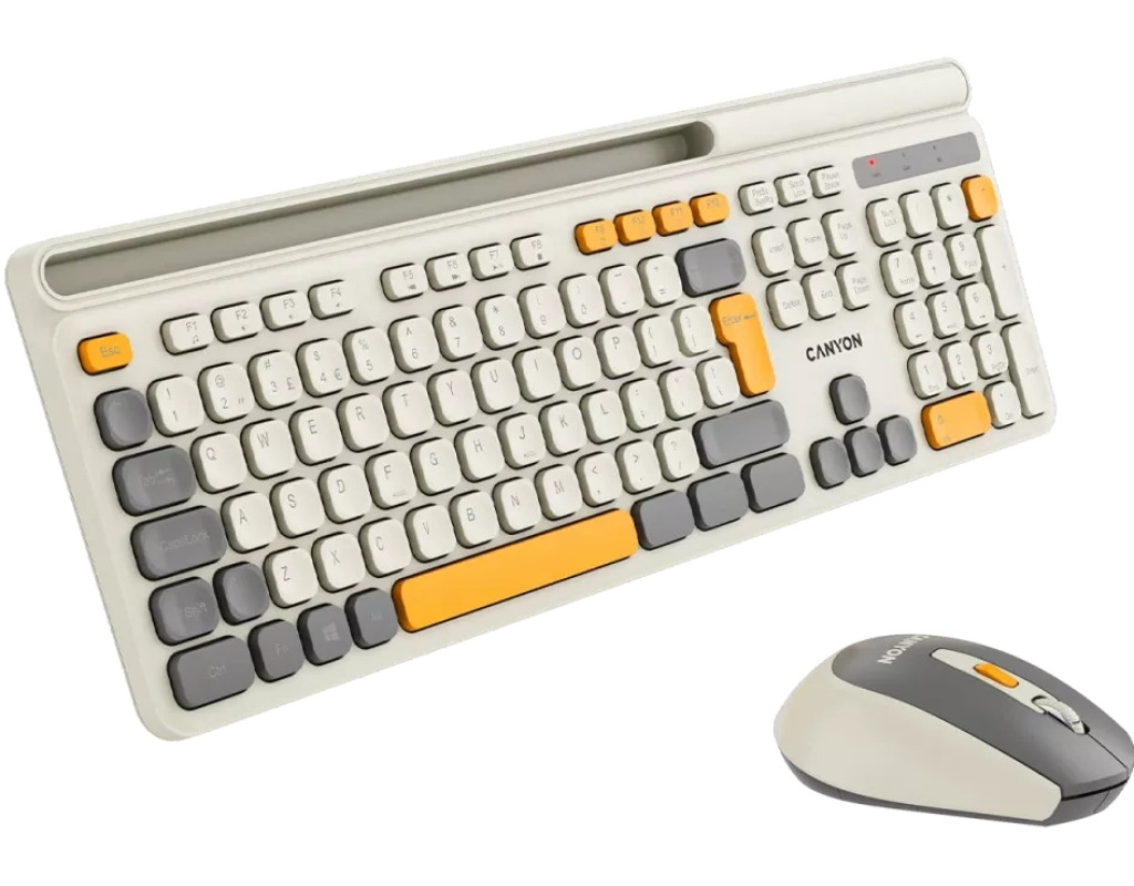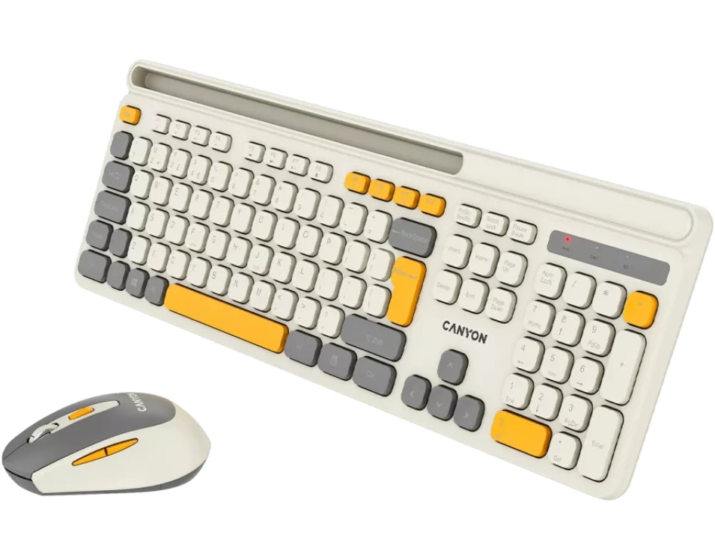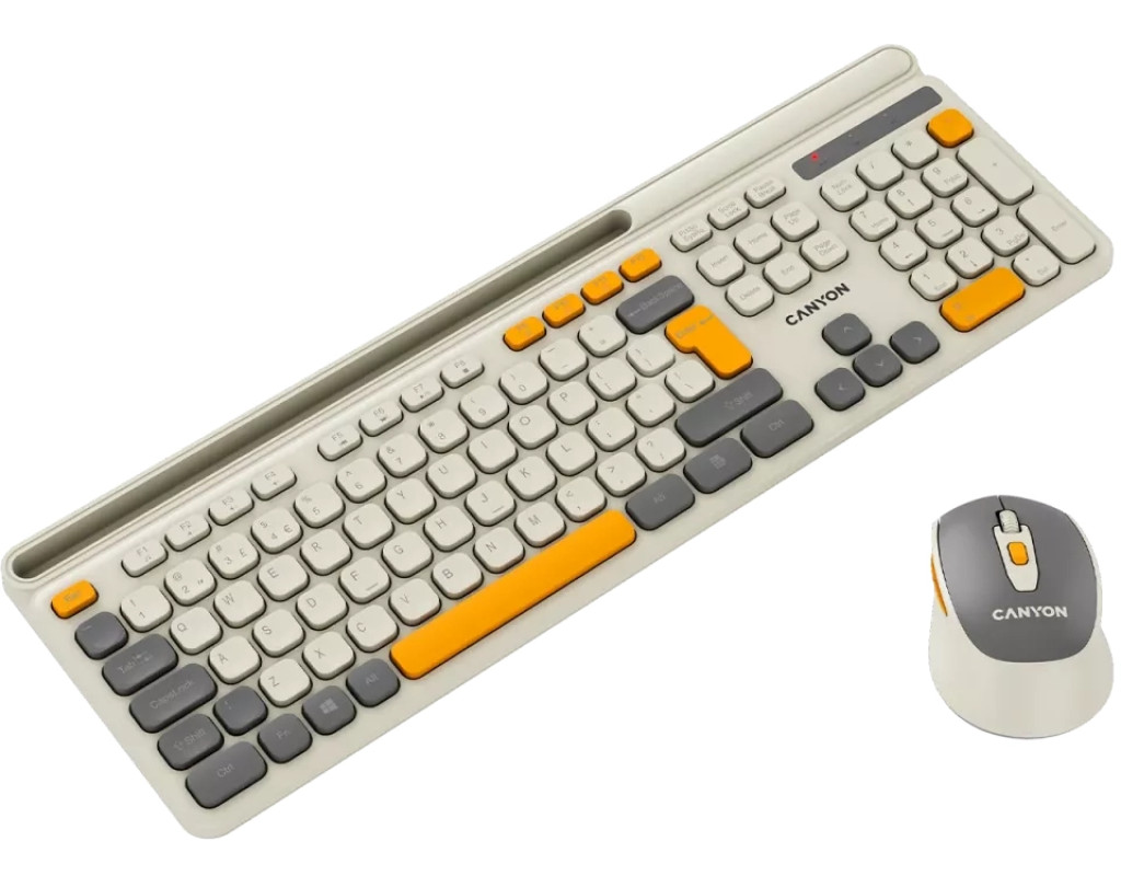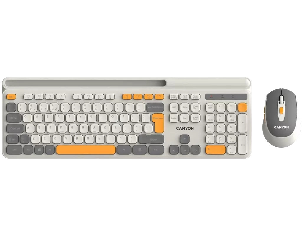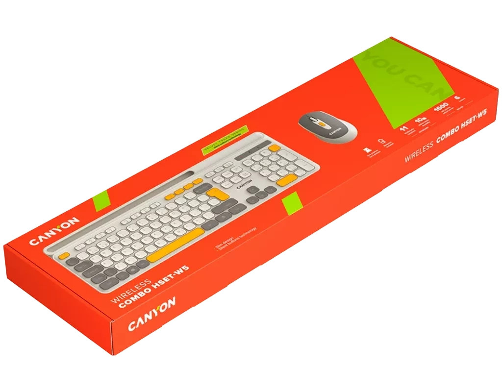 Ідеальне поєднання продуктивності та ергономіки Бездротовий набір Canyon HSET-W5 відкриває новий рівень комфорту та ефективності для щоденної роботи. Завдяки сучасному дизайну та трьом стильним кольоровим рішенням цей комплект стане не лише функціональним інструментом, а й стильним аксесуаром на робочому місці. Зручна та тиха клавіатура Повнорозмірна клавіатура з 105 клавішами забезпечує комфортне введення тексту та швидкий доступ до необхідних функцій завдяки мультимедійним позначкам. Мембранні перемикачі гарантують м'яке та безшумне натискання, дозволяючи працювати без зайвого шуму. Клавіші розраховані на 10 мільйонів натискань, що свідчить про їхню довговічність та надійність. Ергономічний дизайн сприяє природному положенню рук, зменшуючи втому під час тривалої роботи. Чутлива та стильна миша Безшумна миша – ідеальний компаньйон клавіатури. Вона має шість функціональних кнопок із можливістю регулювання DPI, що дозволяє адаптувати швидкість курсору під індивідуальні потреби. Прогумоване soft-touch покриття не лише приємне на дотик, а й забезпечує надійний хват. Легкий корпус і плавні лінії миші створюють відчуття природного комфорту при щоденному використанні. Надійне бездротове з'єднання Завдяки бездротовій технології більше немає необхідності плутатися в кабелях – набір працює стабільно та без затримок. Живлення забезпечується стандартними батарейками, що робить його простим і зручним у використанні. Додаткові переваги Клавіатура має лазерне гравіювання символів, що гарантує їхню довговічність, а матове покриття запобігає появі відбитків пальців. Похилі ніжки з прогумованою основою забезпечують стійкість і комфорт при роботі. Canyon HSET-W5 – це свобода руху, стильний дизайн і комфорт у кожному натисканні. Виберіть колір, що відображає вашу індивідуальність, і насолоджуйтеся новим рівнем зручності! |