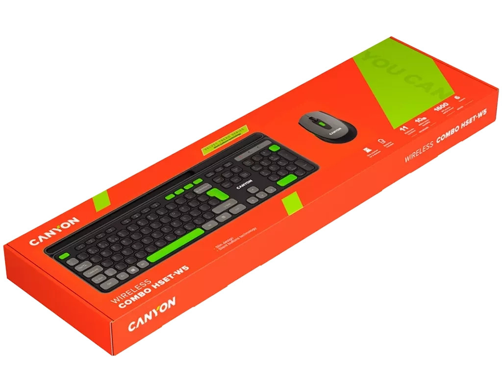 Ідеальне поєднання продуктивності та ергономіки Бездротовий набір Canyon HSET-W5 відкриває новий рівень комфорту та ефективності для щоденної роботи. Завдяки сучасному дизайну та трьом стильним кольоровим рішенням цей комплект стане не лише функціональним інструментом, а й стильним аксесуаром на робочому місці. Зручна та тиха клавіатура Повнорозмірна клавіатура з 105 клавішами забезпечує комфортне введення тексту та швидкий доступ до необхідних функцій завдяки мультимедійним позначкам. Мембранні перемикачі гарантують м'яке та безшумне натискання, дозволяючи працювати без зайвого шуму. Клавіші розраховані на 10 мільйонів натискань, що свідчить про їхню довговічність та надійність. Ергономічний дизайн сприяє природному положенню рук, зменшуючи втому під час тривалої роботи. Чутлива та стильна миша Безшумна миша – ідеальний компаньйон клавіатури. Вона має шість функціональних кнопок із можливістю регулювання DPI, що дозволяє адаптувати швидкість курсору під індивідуальні потреби. Прогумоване soft-touch покриття не лише приємне на дотик, а й забезпечує надійний хват. Легкий корпус і плавні лінії миші створюють відчуття природного комфорту при щоденному використанні. Надійне бездротове з'єднання Завдяки бездротовій технології більше немає необхідності плутатися в кабелях – набір працює стабільно та без затримок. Живлення забезпечується стандартними батарейками, що робить його простим і зручним у використанні. Додаткові переваги Клавіатура має лазерне гравіювання символів, що гарантує їхню довговічність, а матове покриття запобігає появі відбитків пальців. Похилі ніжки з прогумованою основою забезпечують стійкість і комфорт при роботі. Canyon HSET-W5 – це свобода руху, стильний дизайн і комфорт у кожному натисканні. Виберіть колір, що відображає вашу індивідуальність, і насолоджуйтеся новим рівнем зручності! |
