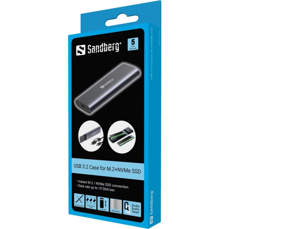 Зовнішня кишеня для дисків SSD M.2 (NVMe) M-Key Sandberg 136-39 є ідеальним рішенням для тих, хто бажає перетворити свій внутрішній накопичувач у швидкий і надійний портативний пристрій. Вона дозволяє без використання інструментів встановлювати SSD різних форм-факторів (2230/2242/2260/2280), забезпечуючи універсальність і зручність у використанні. Завдяки сучасному інтерфейсу USB 3.2 ви отримаєте вражаючу швидкість передачі даних до 10 Гбіт/с, що дозволяє швидко копіювати великі файли, працювати з мультимедійними проєктами або запускати додатки безпосередньо з зовнішнього накопичувача. |