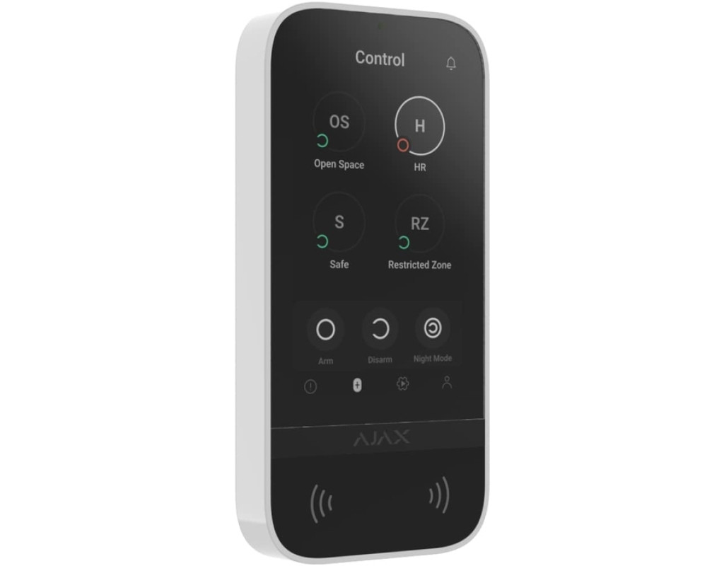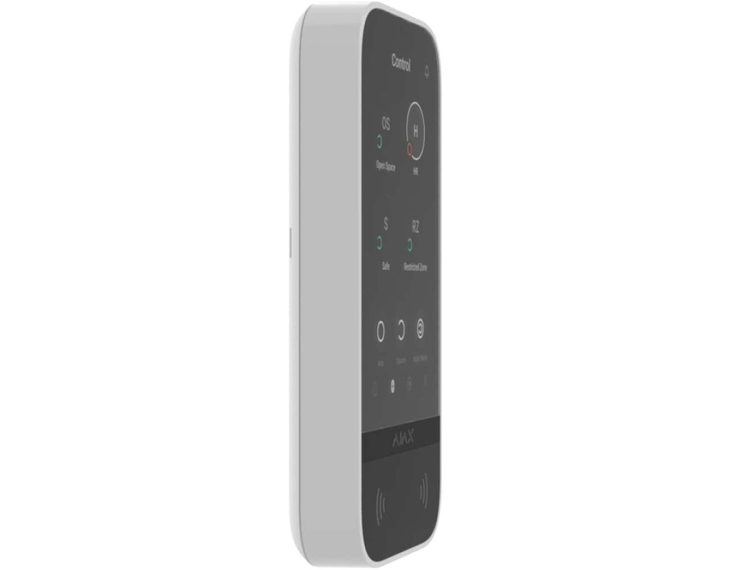 KeyPad TouchScreen обладнана вбудованим зумером, сенсорним дисплеєм та зчитувачем для безконтактної авторизації. Клавіатуру можна використовувати, щоб керувати режимами охорони та пристроями автоматизації, а також сповіщати про тривоги в системі.