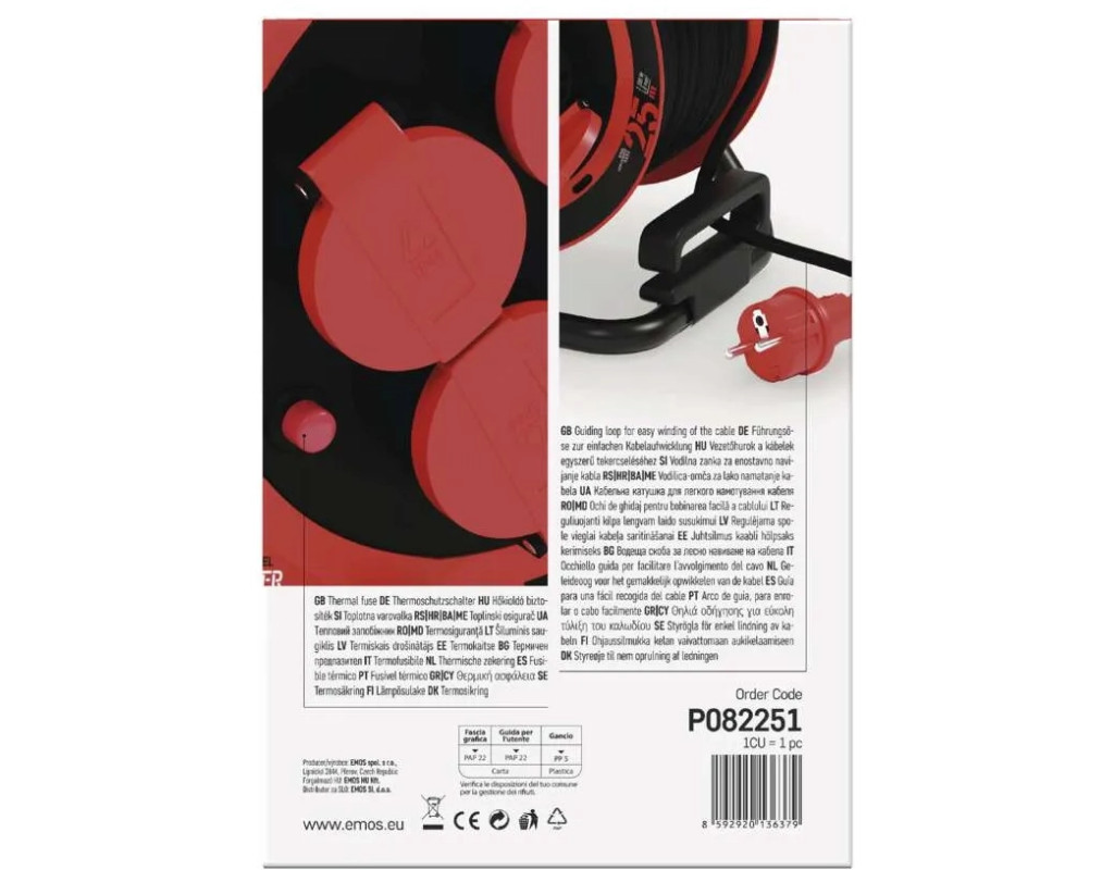 Універсальний погодостійкий подовжувач на котушці Emos P08225 призначений для використання в різних погодних умовах, завдяки ступеню захисту IP44, який забезпечує захист від бризок води та твердих тіл розміром більше 1 мм. Це робить його ідеальним для використання на вулиці, у саду, гаражі або на терасі. Особливості: