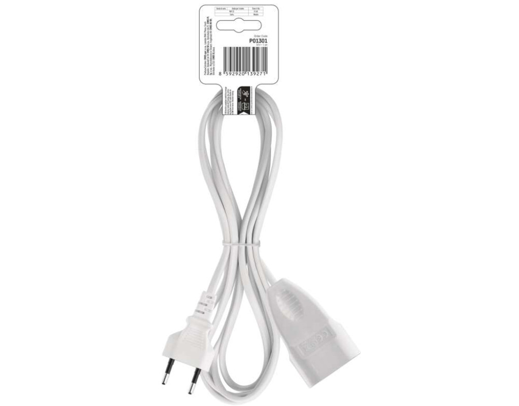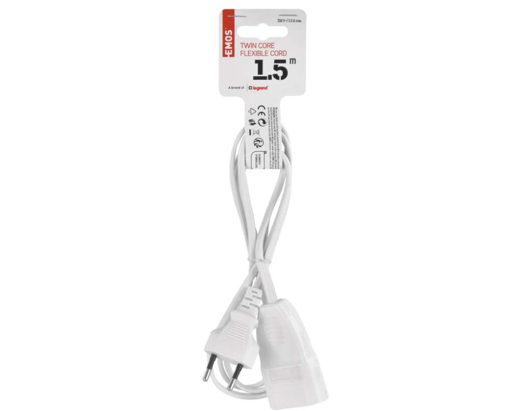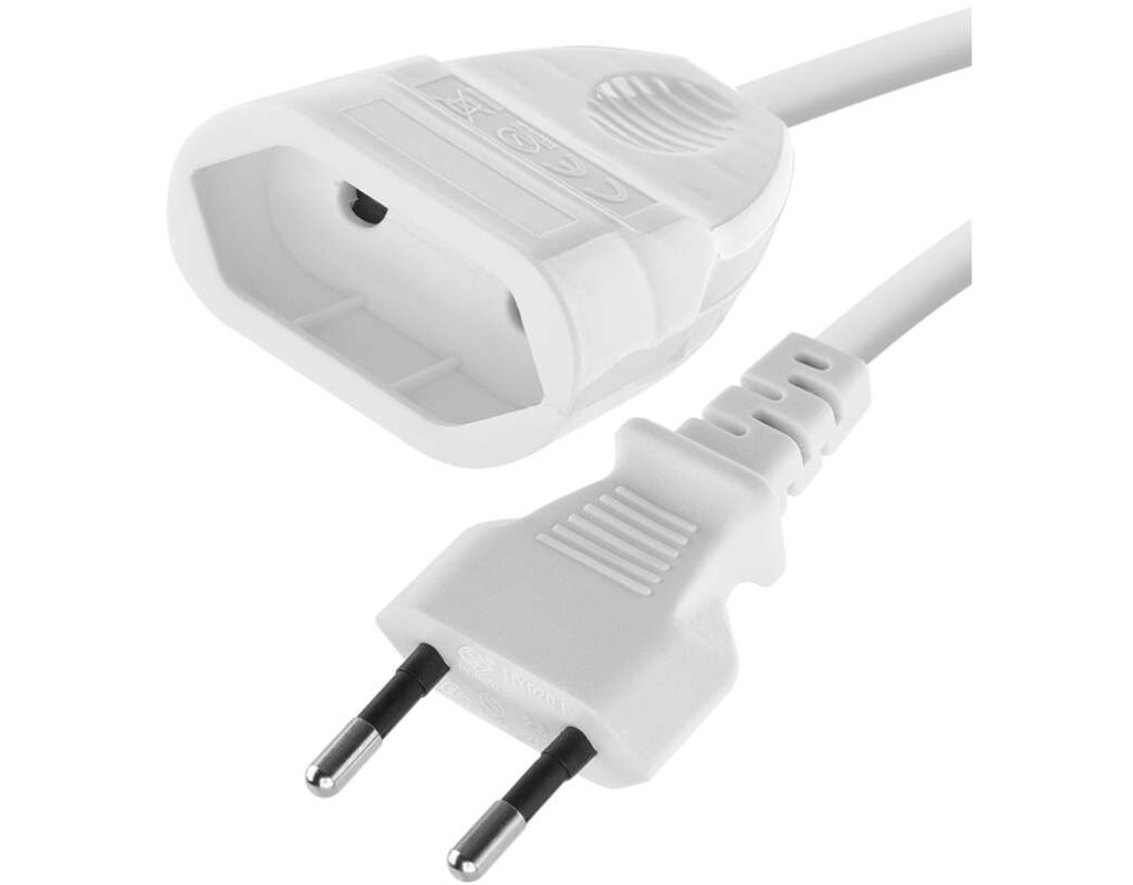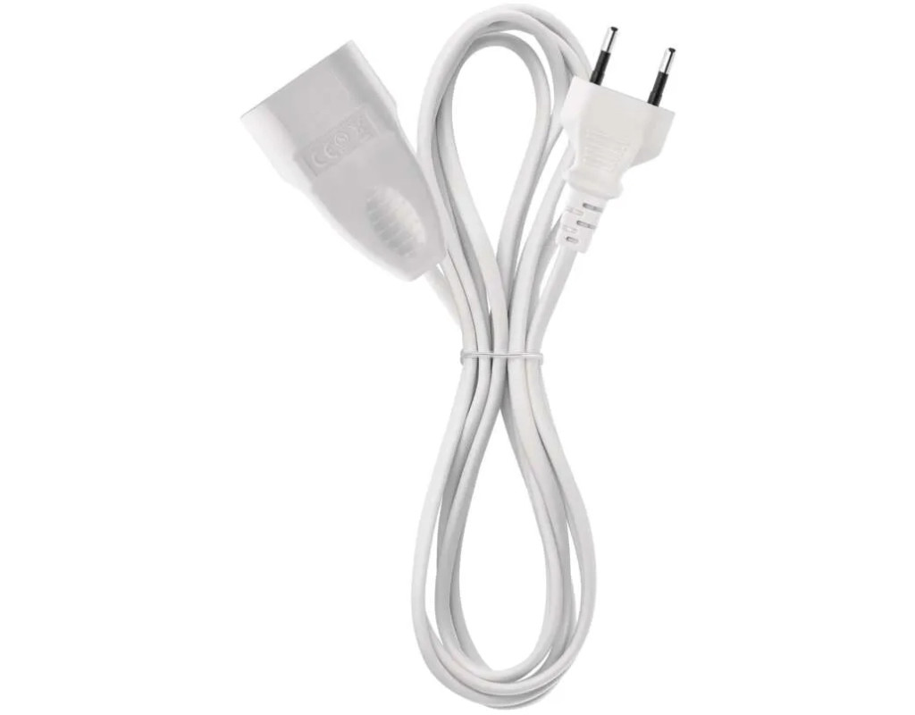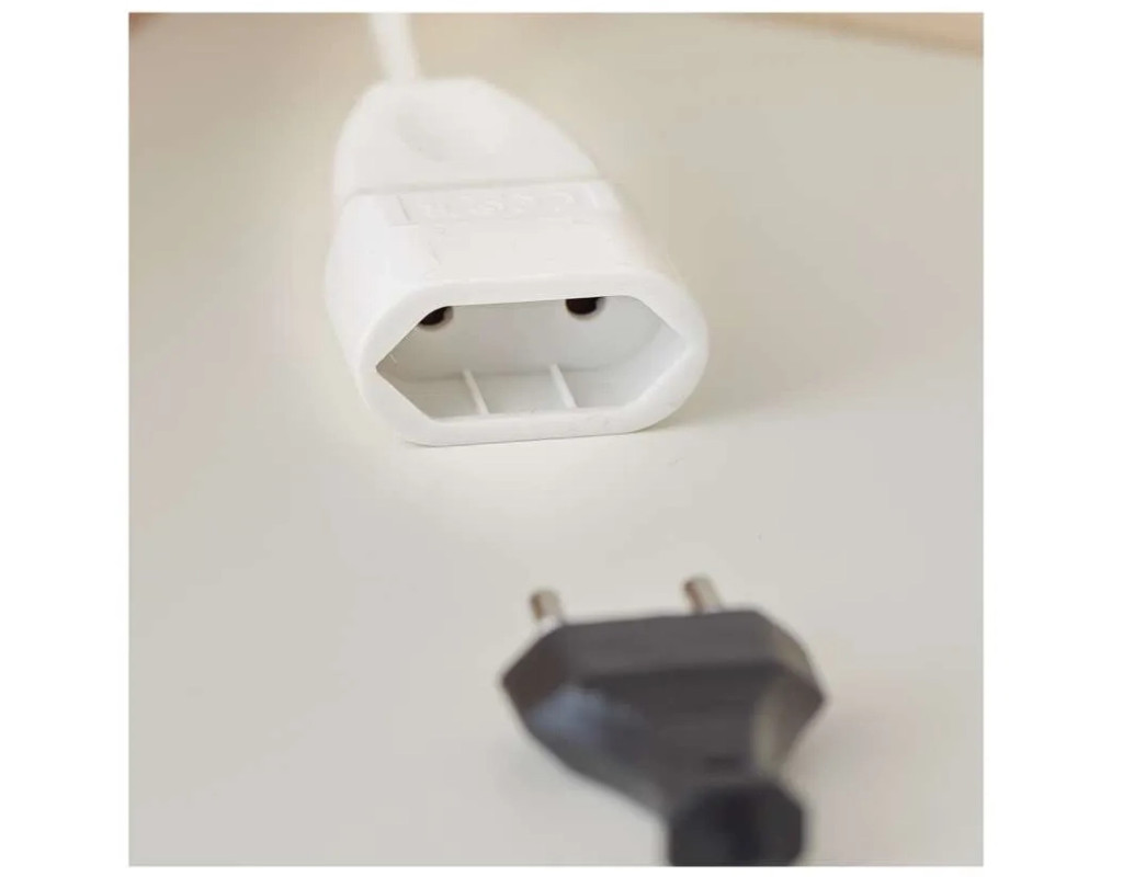 Кількість розеток - 1, євророзетка без заземлення (Тип С), Довжина кабелю - 1.5 м, з плоскою вилкою, Захист - IP20, Сумарна потужність підключеного навантаження - ≤ 575 Вт, Колір - білий