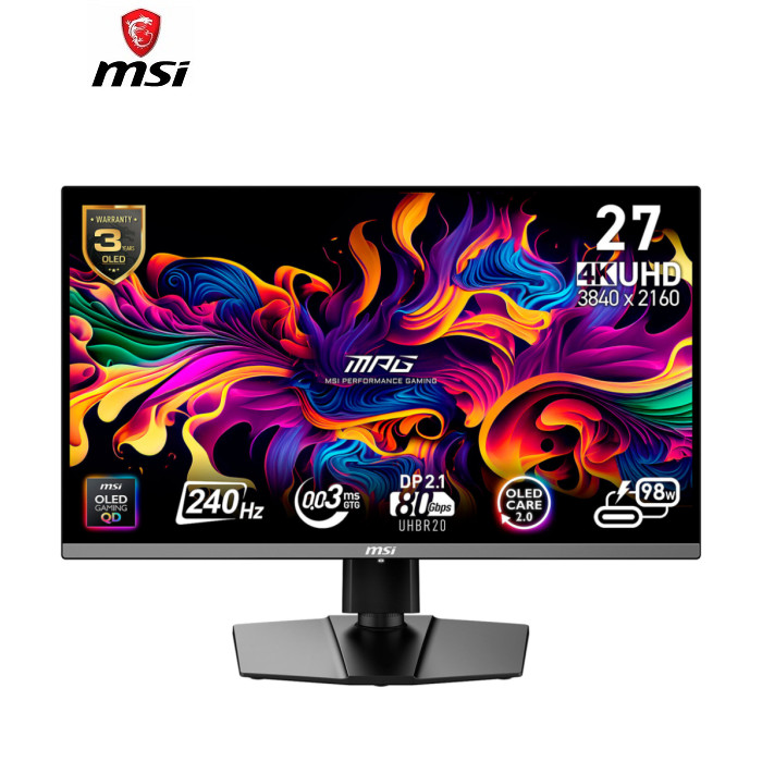 Випробуйте захоплюючий ігровий процес з ігровим монітором MPG 272URX QD-OLED. Він оснащений панеллю QD-OLED 3840x2160 (UHD), частотою оновлення 240 Гц і швидким часом відгуку 0.03 мс (GtG). Сертифікація VESA для ClearMR 13000 і DisplayHDR True Black 400 гарантує винятково яскраві зображення і згладжує розмитість зображення. Технологія OLED Care 2.0 допомагає запобігти вигоранню. Для геймерів на консолях MPG 272URX QD-OLED надає порти HDMI 2.1 з пропускною спроможністю 48 Гбіт/с, підтримкою 4K 120 Гц, VRR і ALLM, а новітній DisplayPort 2.1a забезпечує пропускну здатність 80 Гбіт/с для ігрових і професійних дисплеїв. Його вдосконалений кабель підтримує майбутнє обладнання без втрати продуктивності. Преміальна серія MPG від MSI розроблена для геймерів, яким потрібна висока продуктивність і елегантний дизайн. Кожен продукт демонструє передову естетику і яскраві кольори, відображаючи прихильність MPG винятковому дизайну. Завдяки оптимізованим конфігураціям MPG створює візуально яскравий і потужний ігровий досвід, який лідирує в тенденціях. Дизайн майбутнього DisplayPort 2.1a (UHBR20) покращує стабільність, якість і сумісність із майбутнім обладнанням, збільшуючи пропускну здатність одного каналу з 8.1 Гбіт/с до 20 Гбіт/с і досягаючи загальної пропускної спроможності 80 Гбіт/с - у 2.5 раза більше, ніж у DisplayPort 1.4a. DisplayPort 2.1a (UHBR20) задовольняє попит на високі частоти оновлення за високої роздільної здатності, безпосередньо підтримуючи 4K за 240 Гц без DSC і забезпечуючи функції DSR і DLDSR. Сумісність із G-Sync Підтримка G-SYNC Compatible забезпечує більш плавну гру без розривів, синхронізуючи частоту оновлення монітора з графічним процесором. Вона зменшує розриви екрана, заїкання та затримку введення для більш плавного досвіду, особливо в динамічних іграх. Крім того, вона повністю підтримує майбутнє обладнання, даючи змогу геймерам максимізувати продуктивність сучасних графічних процесорів. Це забезпечує безшовну сумісність і оптимальну візуальну якість, даючи змогу користувачам повною мірою використовувати нові функції, як-от трасування променів і змінна частота оновлення. Оновлення прошивки MPG 272URX QD-OLED може оновлювати прошивку через роз'єм USB і DP, що просто і зручно у використанні. Це дає змогу користувачам самостійно оновлювати прошивку в будь-який час, коли MSI випускає останню версію. Це гарантує, що екран завжди перебуває в найкращому оптимізованому стані. Впевненість гарантована Монітори MSI OLED розроблені для довготривалих, захопливих візуальних ефектів. Індивідуальна конструкція радіатора та вдосконалена графенова плівка покращують розсіювання тепла, а спеціальне програмне забезпечення знижує ймовірність вигоряння з плином часу. Сертифікація з динамічного освітлення Windows Монітор отримав сертифікат Windows Dynamic Lighting, що дає змогу користувачам керувати світловими ефектами на під'єднаних пристроях і синхронізувати їх. Користувачі можуть налаштовувати яскравість, ефекти та синхронізацію для створення однакового інтерфейсу на всіх сумісних пристроях, забезпечуючи безшовну інтеграцію з Windows Dynamic Lighting. MPG 272URX QD-OLED