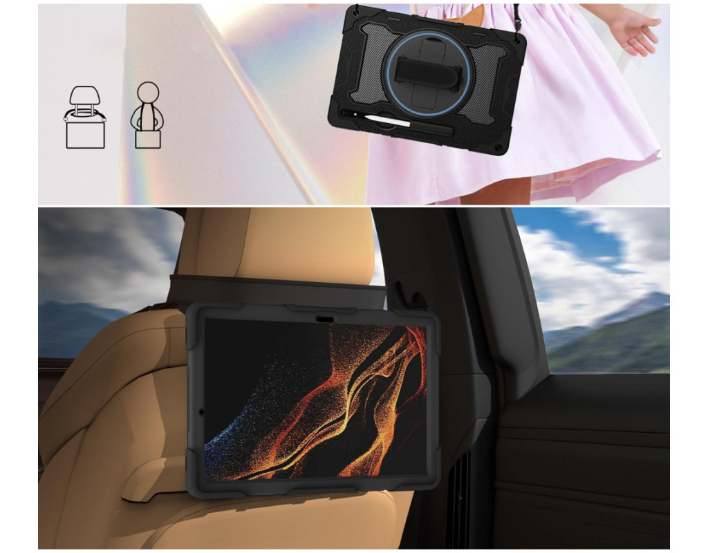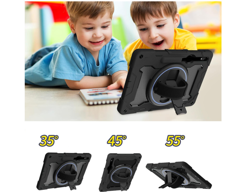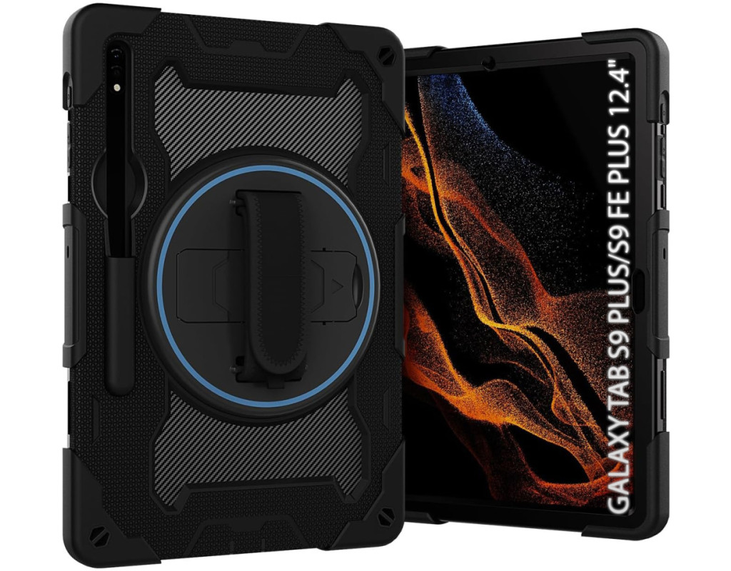 Тип - накладка, Сумісність з моделями - Samsung Galaxy Tab S9 Plus, Samsung Galaxy Tab S9 FE Plus, діагональ - 12.4, Спосіб кріплення - рамка-тримач, Матеріал - полікарбонат, силікон, чорний