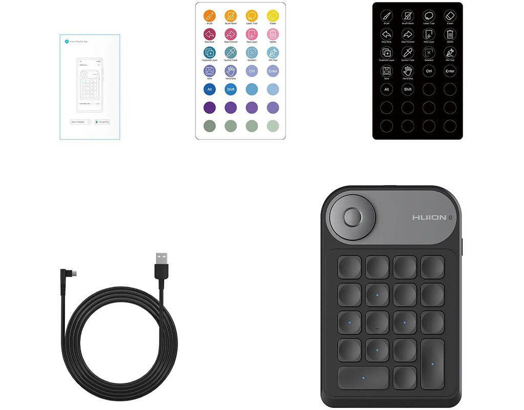Забудьте про клавіатуру та насолоджуйтесь високою ефективністю з Mini Keydial K20. Спеціальна клавіатура для однієї руки може бути повністю налаштована під ваш робочий процес та заощаджує робочий простір. Насолоджуйтесь збалансованим натисканням клавіш Клавіатура Mini Keydial K20 забезпечує плавне натискання клавіш з усіх боків. Зменшений загальний інтервал між кнопками дозволяє ефективно зменшити втому пальців. Натхнення не припиняється Міні-клавіатура K20 має поворотний регулятор для підвищення ефективності під час роботи. Вона не тільки сумісна з протоколом Windows Radial Controller Protocol, що дозволяє користуватися радіальним меню та додатками, але й може бути налаштована на різні функції за допомогою налаштувань драйвера Huion. Налаштуйте всі клавіші Ви можете налаштувати всі клавіші на свій смак, і ми також пропонуємо ці клавіші зі стандартними функціями в режимі без драйвера. Прямокутник для шульг і правшей Завдяки симетричній прямокутній формі Mini Keydial має ергономічний та зручний дизайн, який підходить як для шульг, так і для правшів. На столі чи планшеті Ви можете розмістити клавіатуру Mini Keydial K20 на робочому столі або на моніторі під час роботи. 4 нековзні гумові ніжки на задній панелі K20 забезпечують чудову стійкість під час натискання клавіш. Тримайте контроль Mini Keydial K20 має бездротову функцію та забезпечує відстань з'єднання 5-10 м, що робить ваш робочий простір більш гнучким. Акумулятор ємністю 1200 мАч забезпечує близько 100 годин безперервної роботи. Ви також можете підключати та заряджати його через порт USB-C. Більше налаштувань, більше сумісності Ви можете налаштувати гарячі клавіші всіх клавіш за допомогою драйвера версії V15, а також встановити різні гарячі клавіші для різних програм. Крім того, K20 не тільки сумісний із продуктами Huion, але й може використовуватися з іншими ноутбуками та планшетами для малювання, щоб забезпечити вам більшу зручність. Сумісність: Графічні планшети Графічні монітори Графічні комп'ютери |