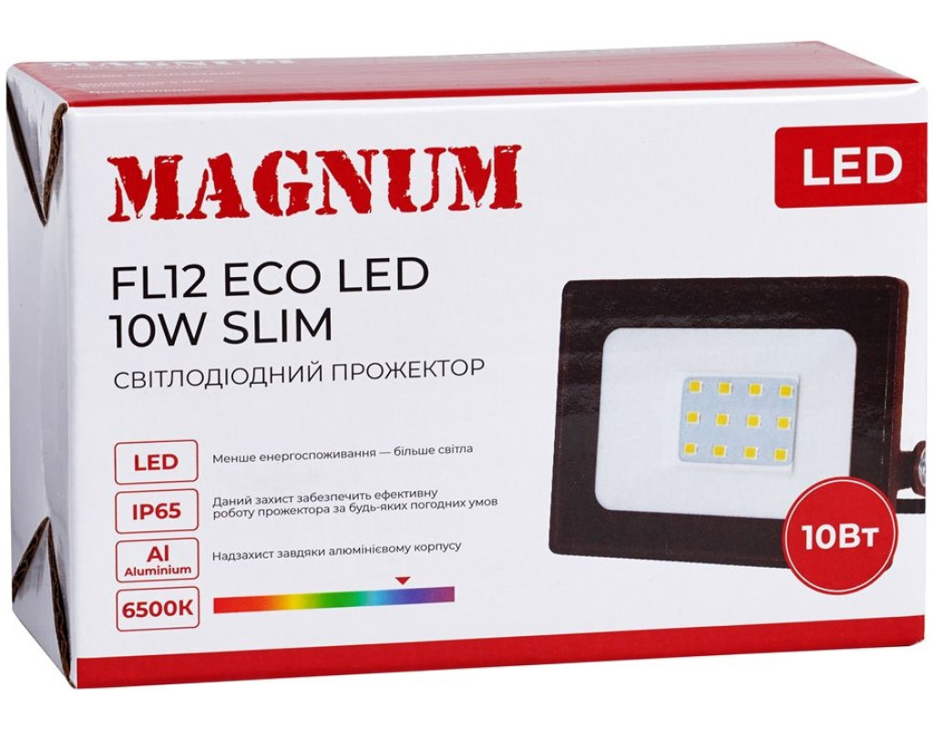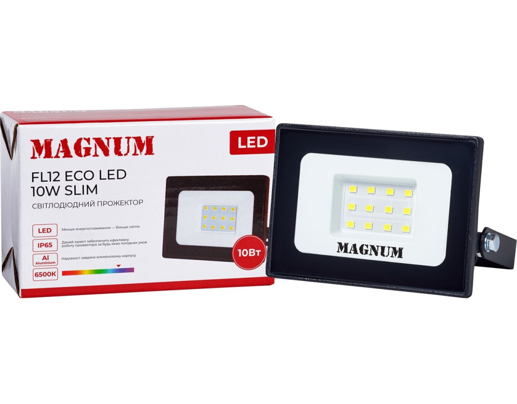 Світлодіодні прожектори ТМ Magnum серії FL12 ECO LED slim призначені для освітлення рекламних конструкцій, вивісок, під'їздів, гаражів, зовнішньої підсвітки будинків, споруд, спортивних майданчиків, автостоянок та різних промислових об'єктів.