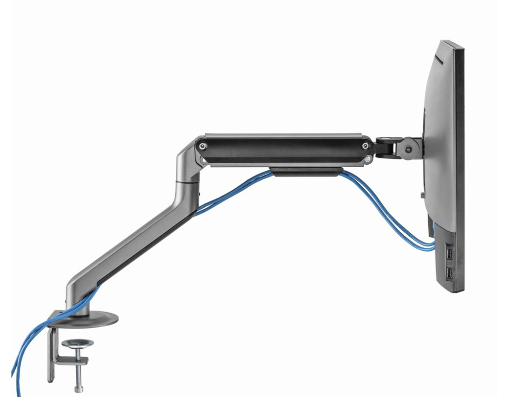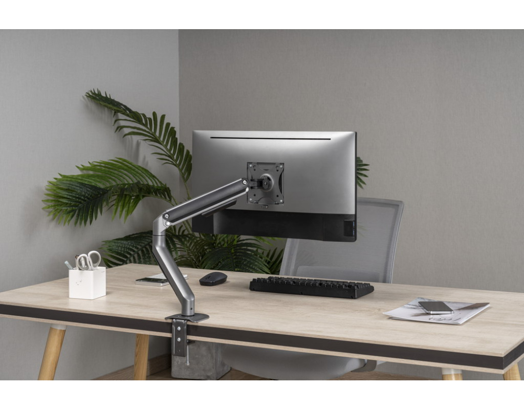 Кріплення обертається, висувається та втягується, нахиляється, щоб змінювати кут читання, і дозволяє повертати дисплей з альбомного режиму на портретний тощо Забезпечує легке ергономічне розташування для зменшення навантаження Працює практично з будь-яким LCD-монітором (макс. 32 дюйми) Міцні регульовані газові пружини підходять для моніторів вагою 2-9 кг Міцний настільний затискач або втулка для легкої та надійної фіксації на столі Вбудована система кабель-менеджменту для організованого й охайного робочого простору Сумісність з VESA (100 x 100 мм і 75 x 75 мм) |