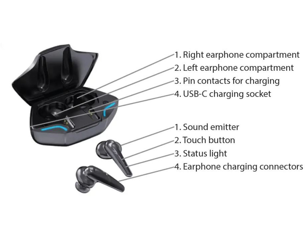 Ігровий дизайн і висока якість звуку роблять навушники ідеальним гаджетом для геймерів, але не тільки. Ви можете використовувати навушники щодня, наприклад, слухати улюблену музику або подкасти. Крім функції зарядки, портативний Powerbox дозволяє безпечно зберігати навушники в сумці, рюкзаку або кишені. Це інноваційне рішення ідеально підходить для людей, які цінують комфорт. На Powerbox є два синіх світлодіоди, які надають навушникам ігровий характер. Навушники також мають мікрофон, тому ви можете легко здійснювати голосові дзвінки під час гри (наприклад, у Discord), а також телефонувати. У навушниках є функціональна сенсорна кнопка, що дозволяє легко керувати ; включаючи: відповідь на вхідні дзвінки, завершення дзвінків і регулювання гучності. |