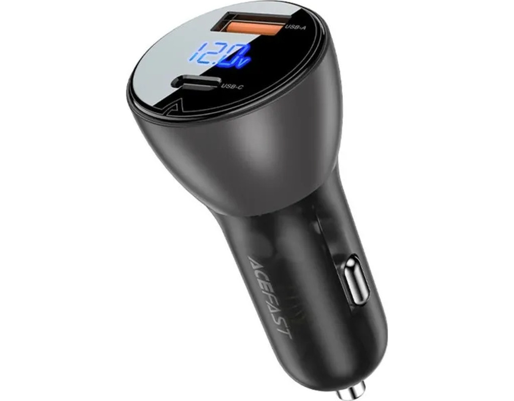 Ви шукаєте простий, надійний та швидкісний автомобільний зарядний пристрій? Acefast B6 — це ідеальне рішення, що поєднує в собі високу потужність (63 Вт сумарної потужності на два порти), надійність металевого корпусу та зручність використання завдяки цифровому дисплею, що показує вихідну напругу.