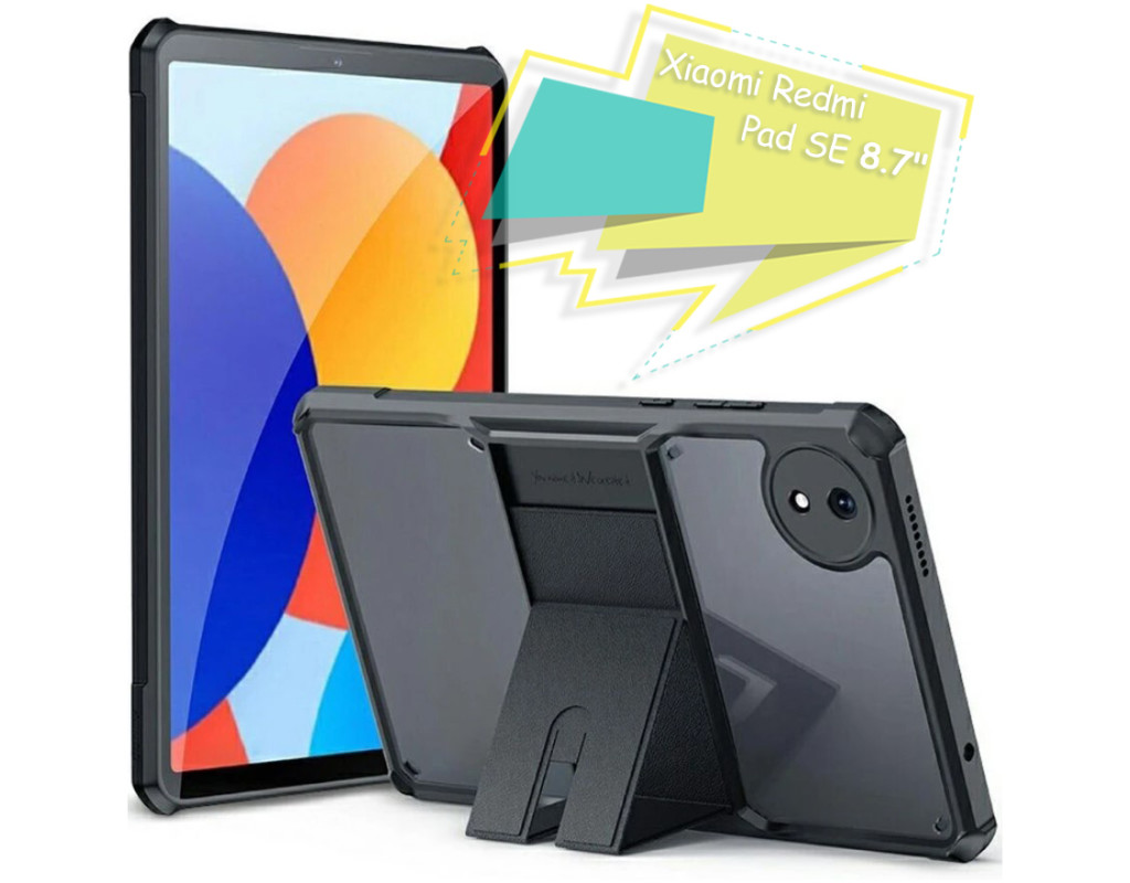 Тип - накладка, Сумісність з моделями - Xiaomi Redmi Pad SE, діагональ - 8.7, Спосіб кріплення - рамка-тримач, Матеріал - полікарбонат, термополіуретан, пластик, чорний
