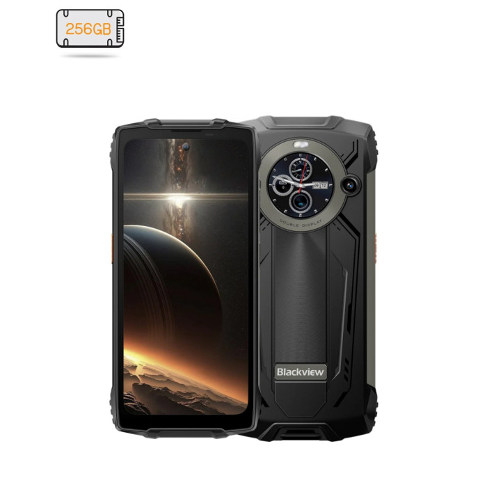 Міцний захищений смартфон з потужним світлодіодним ліхтариком Blackview BV8200 - чудовий вибір для активних людей. Цей гаджет створений для використання в складних експлуатаційних умовах. Беріть його з собою в туристичні походи, на склади чи будівельні майданчики та працюйте, не знімаючи рукавиць навіть у холодні дні. .Смартфон відповідає військовому стандарту MIL-STD-810Н, а отже є стійким до ударів, падінь з висоти до 1,2 м та впливу низьких температур. Покриття екрана Corning® Gorilla® Glass 5 підвищує стійкість до подряпин, ударів і падінь, які можуть трапитись під час щоденного використання. Смартфон відповідає рівню захисту від пилу і вологи IP68/IP69K, а отже він повністю захищений від потрапляння пилу та витримує занурення у воду на глибину до 1,5 метра на 30 хвилин. FHD+ IPS екран з частотою оновлення 120 Гц відтворює яскраве та чітке реалістичне зображення. Різні користувацькі режими – режим читання, нічний та темний режими дозволяють налаштувати екран відповідно до потреб користувачів та зовнішніх умов освітлення. Додатковий 1,3-дюймовий задній дисплей допоможе з легкістю слідкувати за часом та рівнем заряду акумулятора, керувати сповіщеннями, дзвінками, порядком відтворення треків, користуватись компасом та виконувати інші функції. Смартфон Blackview BV8200 оснащений основною 50 МП Samsung® ISOCELL GN5, 32 МП фронтальною, 13 МП ширококутною та макро- камерами. Спілкуйтесь онлайн та записуйте плавне відео з роздільною здатністю до 2К, фіксуйте та зберігайте незабутні моменти свого життя. Технологія Tetrapixel автоматично регулює параметри пікселів в залежності від умов освітлення, що покращує якість фотографії. Інтелектуальні інструменти редагування фотографій, які працюють на основі AI, подарують новий досвід зйомки. Перетворюйте кожне фото на витвір мистецтва. Перекладайте текст, розпізнавайте зображення, знаходьте необхідну інформацію, використовуючи функцію Google Lens. Надгучний динамік Smart-PA Box забезпечує ідеальний звук незалежно від того, слухаєте ви музику, переглядаєте фільми чи граєте в ігри. Із швидкою оперативною пам’яттю об’ємом 12 ГБ, яку можна збільшити до 36 ГБ, ви зможете плавно гортати сторінки та швидко перемикатись між додатками. 256 ГБ вбудованої пам'яті вирішують питання зберігання електронних ігор, програм, відео, фотографій, музики та інших файлів. Збільшуйте додатково сховище до 2 ТБ, використовуючи TF карту. Надійний 8-ядерний процесор MediaTek Helio G100 забезпечує високу продуктивність із швидкою плинністю системи при низькому енергоспоживанні – отримайте нові ігрові враження та можливості обробки зображень. Інтелектуальний механізм керування ресурсами HyperEngine 2.0 розподіляє потужність центрального і графічного процесорів та оперативної пам’яті для ще більш плавної та безперебійної гри. Інтегрована система охолодження ефективно відводить тепло з процесора, що дозволяє досягти бажаної продуктивності без зміни тривалості автономної роботи. Встановлюйте на кнопку швидкого доступу сім різних функцій, таких як ліхтарик, запис звуку, скріншоти, відкриття підводної камери, активація ігрового режиму, PPT, SOS та користуйтесь ними відразу після натискання кнопки. Blackview BV8200 - це багатофункціональний інструментарій, який вміщує в собі ліхтарик, компас, звукомір, барометр, транспортир, вимірювач висоти, градієнтометр, лупу та інші інструменти. Потужний двопроме
