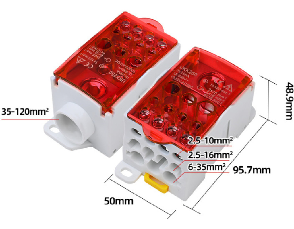 | Паралельний розгалужувач-сплиттер UKK250 призначений для безпечного та ефективного розподілу потужного електричного сигналу від одного джерела на декілька незалежних ліній. Це професійне рішення для організації складних електричних з`єднань у стаціонарних установках, де потрібна висока надійність та відповідність суворим стандартам. Даний спліттер вирішує ключове завдання щодо заміни небезпечних та неестетичних «скруток» проводів, забезпечуючи ідеальний порядок у розподільчих щитах, електрошафах та силових колодках. Він незамінний в енергетиці, промисловій автоматиці, при підключенні потужного освітлення, телекомунікаційного обладнання та альтернативній енергетиці для комутації сонячних панелей. - Безпечне та впорядковане розгалуження силових ланцюгів - Міцне з`єднання без втрати провідності сигналу - Суттєва економія простору в електрощитах - Спрощення монтажу та подальшого обслуговування систем Цей продукт ідеально підходить для професійних електромонтажників, інженерів-проектувальників, сервісних технічних фахівців та монтажників систем альтернативної енергетики. ХАРАКТЕРИСТИКИ: • Конфігурація входів / виходів: 1 вхід на 120 мм², 11 виходів (2х35 мм² + 5х16 мм² + 4х10 мм²) • Номінальний струм: до 250 А • Робоча напруга: до 1000 V AC / DC • Матеріал провідних елементів: Латунь • Габаритні розміри: 95 x 50 x 50 мм • Колір корпусу: Червоний Використання розгалужувача UKK250 – це професійний підхід до створення довговічних, безпечних та легко обслуговуваних електричних систем високої потужності. |