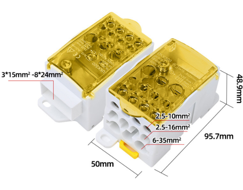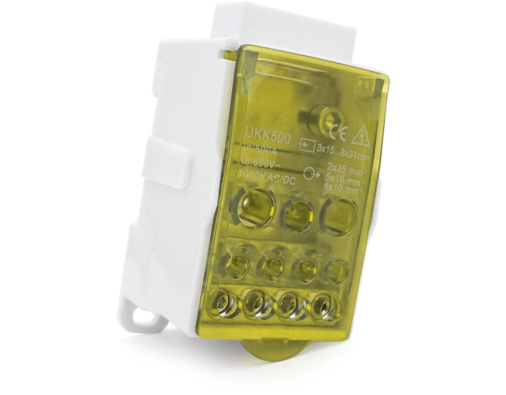 | Паралельний розгалужувач-спліттер UKK500 – це професійне та надійне рішення для організації складних електричних з`єднань. Пристрій призначений для безпечного та рівномірного розподілу потужного струму від одного джерела на декілька незалежних ліній. Завдяки своїй універсальності та високій здатності навантаження, спліттер знаходить застосування в промисловому обладнанні, енергетиці, телекомунікаціях і при будівельно-монтажних роботах. Цей розгалужувач вирішує ключові завдання щодо створення тимчасових або постійних електричних схем, забезпечуючи компактність, порядок та максимальну безпеку підключень. Він ідеально підходить для інженерів-електриків, монтажників та технічних фахівців, які працюють з високими струмами та потребують безвідмовного комутаційного обладнання. Особливості моделі: - Конструкція з 11 виходами для паралельного підключення кабелів різного перерізу. - Універсальний вхідний порт розрахований на широкий діапазон перерізів кабелю. - Високі показники напруги та струму: до 1000V AC / DC та 500А. - Компактний та міцний корпус для використання у стиснених умовах. - зносостійкі латунні елементи для мінімального перехідного опору та надійного контакту. - Яскравий жовтий колір корпусу для видимості на об`єкті. Технічні характеристики: • Модель: UKK500 • Кількість виходів: 11 • Перерізи виходів: 2 виходи 35 мм², 5 виходів 16 мм², 4 виходи 10 мм² • Вхідний діапазон перерізів: від 3х15 мм² до 8х24 мм² • Максимальна напруга: 1000V AC / DC • Максимальний струм: 500А • Матеріал контактної групи: латунь • Габаритні розміри: 95x50x50 мм • Колір: жовтий Використовуйте паралельний розгалужувач UKK500 для створення безпечних, ефективних та організованих точок підключення, де потрібний розподіл значних електричних потужностей. |