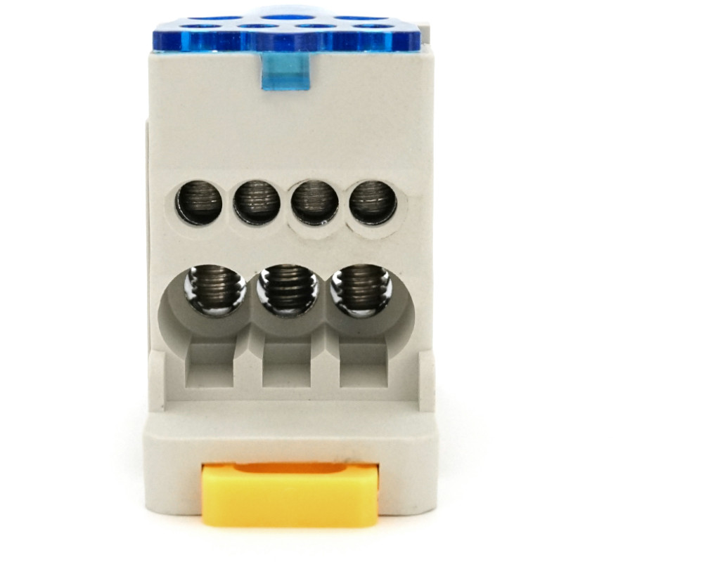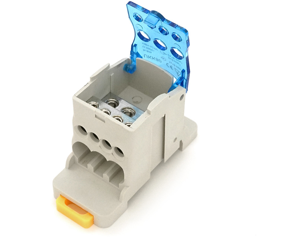 Паралельний розгалужувач-спліттер UKK80, 6 виходів (латунь) 4х6мм²+2х16мм², вхід 1х16мм², AC / DC 1000V, 80А, 75*47*29,4 мм, BLUE