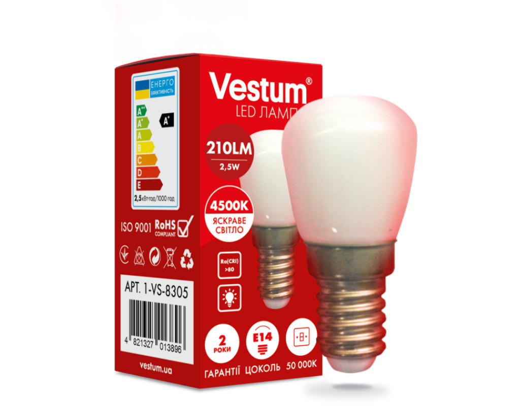 Світлодіодна лампа Vestum SMD Е14 2,5W 4500K 220V спеціально розроблена для використання в холодильниках. Завдяки компактним розмірам і цоколю типу Е14, вона легко встановлюється у стандартні патрони. Лампа дає нейтральне біле світло з температурою 4500K, що ідеально підходить для освітлення внутрішнього простору холодильника, забезпечуючи чітке і природне освітлення. Потужність лампи всього 2,5 Вт, що дозволяє зменшити споживання енергії при збереженні яскравості. Вона дає таку ж кількість світла, як лампа розжарювання потужністю 25 Вт, але термін служби значно довший — до 20 000 годин. Корпус лампи виготовлений із термостійкого матеріалу, що дозволяє їй стабільно працювати при низьких температурах. Використання світлодіодів типу SMD робить лампу надійною і екологічною альтернативою традиційним джерелам світла. Переваги світлодіодної лампи Vestum для холодильників