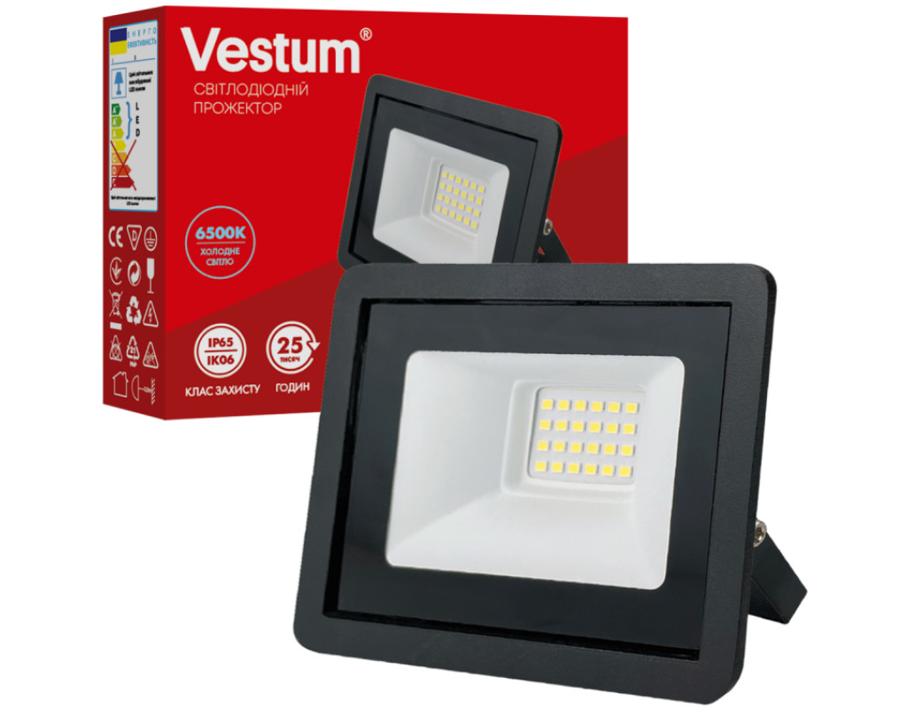 LED прожектор Vestum має ступінь вологозахисту IP65 і підходить для використання як в приміщеннях, так і на вулиці. Литий анодований корпус і загартоване скло забезпечують прожектору високу міцність. У прожекторі використовуються світлодіоди Epistar, що забезпечують високу енергоефективність і тривалу безперебійну роботу. Переваги світлодіодного прожектора Vestum: - Стабільно працює при перепадах напруги в мережі.