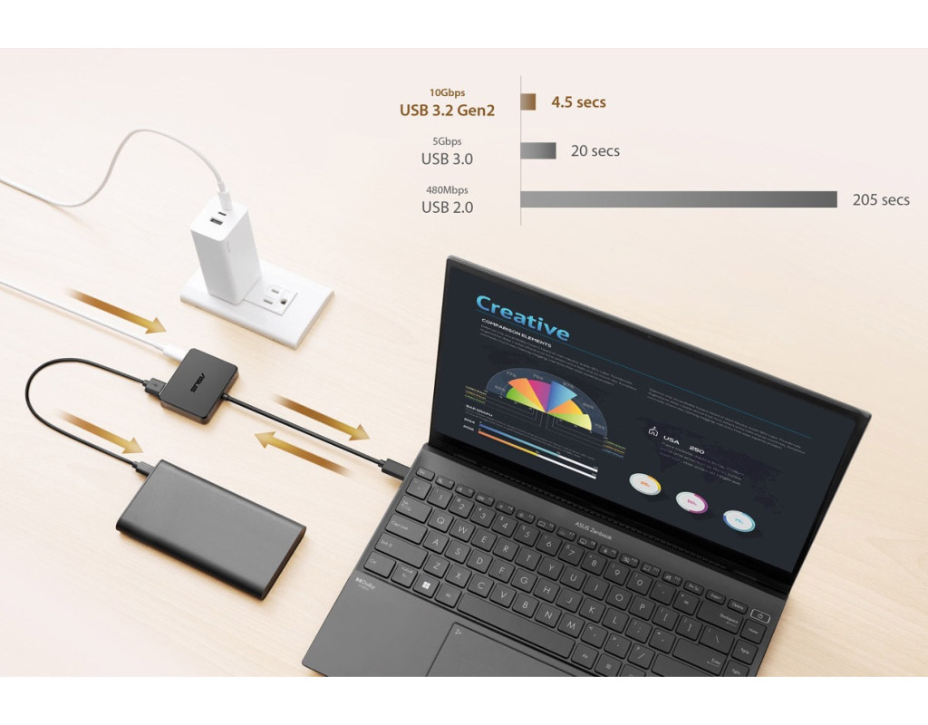 | Компактна та функціональна док-станція ASUS USB-C Mini Dock – легка й компактна док-станція з інтерфейсом USB-C, яка розширює можливості підключення вашого ПК і ноутбука. Док-станція пропонує вихід HDMI для виведення 4K-зображення та порти USB Type-A і USB-C зі швидкістю передачі даних до 10 Гбіт/с, причому USB-C підтримує також живлення потужністю до 100 Вт. Працюйте будь-деДок-станція ASUS USB-C Mini Dock має товщину лише 11,35 мм і важить всього 48 г, що робить її ідеальним пристроєм для мобільних користувачів. Висока швидкість передачі даних і заряджанняДок-станція ASUS USB-C Mini Dock оснащена портом USB-C з підтримкою напруги живлення потужністю 100 Вт – цього достатньо, щоб швидко заряджати сучасні ноутбуки. Обидва USB-порти (USB Type-A і USB-C) пропонують швидкість передачі даних до 10 Гбіт/с, що в 4 рази швидше, ніж USB 3.0, тому копіювання великих файлів і папок займає всього кілька секунд. Користувачі також можуть використовувати USB-порти для заряджання смартфонів та інших пристроїв. Зручність і підтримка дисплеїв 4KASUS USB-C Mini Dock дозволяє виводити 2K-відео з частотою оновлення 144 Гц або зображення 4K зі стандартною частотою оновлення на моніторі, підключеному через порт HDMI для розширення робочого простору та ефективної роботи в багатозадачному режимі. Широка сумісністьASUS USB-C Mini Dock пропонує порти USB-C, USB Type-A і HDMI, кожен із яких був випробуваний для забезпечення довговічності. Тестування включали випробування на міцність, перевантаження, вплив вібрації та екстремальних умов вологості, висоти й температури. Надійна конструкціяДля забезпечення довговічності та якісного сигналу док-станція ASUS USB-C Mini Dock оснащена кабелем з екраном у вигляді алюмінієвого обплетення, що забезпечує до 1,7 раза кращу продуктивність порівняно зі стандартними кабелями. Завдяки такому рішенню мінімізується ризик послаблення сигналу, а рівень перешкод знижується на 60%, що підвищує надійність з’єднання. Крім того, кабель надзвичайно міцний і пройшов випробування, які показали, що він витримує до 10 000 спроб згину й скручування. |