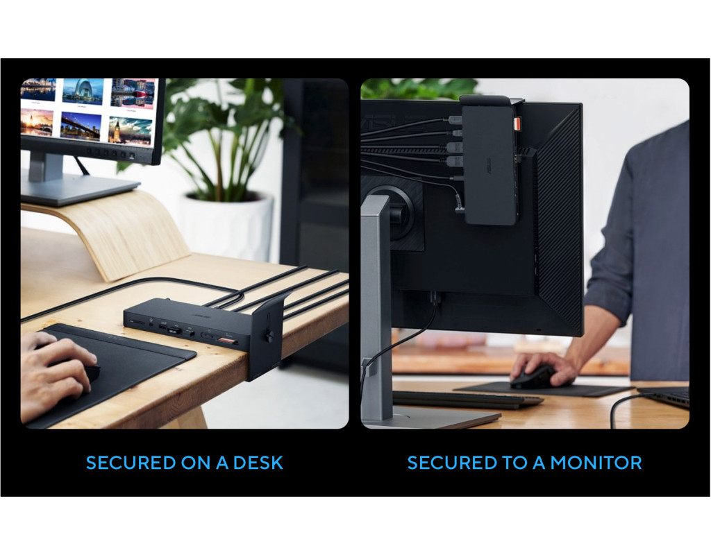ASUS Потрійний 4K Док-станція Thunderbolt 4 Усі необхідні вам з'єднання ASUS Triple 4K Thunderbolt 4 Dock - це універсальна док-станція, розроблена для творчих людей, і найменша док-станція Thunderbolt 4 12-в-1. Для під'єднання декількох дисплеїв 4K і периферійних пристроїв, а також пристроїв читання карт пам'яті до ноутбука розробника потрібен лише один кабель. Продуктивність Підтримка трьох дисплеїв 4K і двох HDMI 2.1 Завдяки Thunderbolt 4 і двом портам HDMI 2.1 док-станція ASUS Triple 4K Thunderbolt 4 дає змогу творцям контенту виконувати кілька завдань одночасно та працювати з вищим рівнем деталізації на одному моніторі 8K або на трьох моніторах 4K. Універсальність Неперевершені візуальні ефекти в роздільній здатності 8K Захопливі враження від перегляду можливі завдяки надвисокій роздільній здатності 8K через HDMI 2.1 або Thunderbolt 4. Перевірте таблицю нижче для отримання інформації про конкретні роздільні здатності. Зв'язність Одночасне під'єднання декількох пристроїв ASUS Triple 4K Thunderbolt 4 Dock містить безліч портів введення/виведення, які дають змогу одночасно під'єднувати безліч пристроїв, включно з камерами, дронам тощо. Крім того, він містить два пристрої читання карт пам'яті SD і microSD, що дає користувачам змогу швидко та легко виконувати резервне копіювання даних із різних пристроїв. Найвища швидкість Більш швидке передавання даних Високошвидкісна передача даних полегшується за допомогою 2.5 G Ethernet і Thunderbolt 4 підключення, навіть для великих файлів, що дозволяє користувачам робити більше за менший час. Наприклад, 12 секунд достатньо, щоб передати файл зображення обсягом 20 ГБ. Порт UFP Thunderbolt 4 забезпечує наскрізне заряджання потужністю до 96 Вт. ASUS Triple 4K Thunderbolt 4 Dock також спрощує для ІТ-адміністраторів управління активами компанії та зберігання інформації в безпеці за допомогою наскрізної передачі MAC-адрес. Дизайн Компактний, інноваційний дизайн ASUS Triple 4K Thunderbolt 4 Dock - це найменша док-станція 12-в-1 з підтримкою Thunderbolt 4. Виконана з алюмінію, її точена прямокутна конструкція ідеально підходить під підставку для монітора, забезпечуючи акуратне налаштування робочої станції. Інноваційні функції охолодження підтримують внутрішню температуру на оптимальному рівні, забезпечуючи постійну високу продуктивність. Дизайн Добре організоване робоче місце Регульована алюмінієва підставка забезпечує док-станції ASUS Triple 4K Thunderbolt 4 надійну опору на столі, а також обладнана фіксатором, який дає змогу закріпити її на краю столу або на задній панелі монітора. |