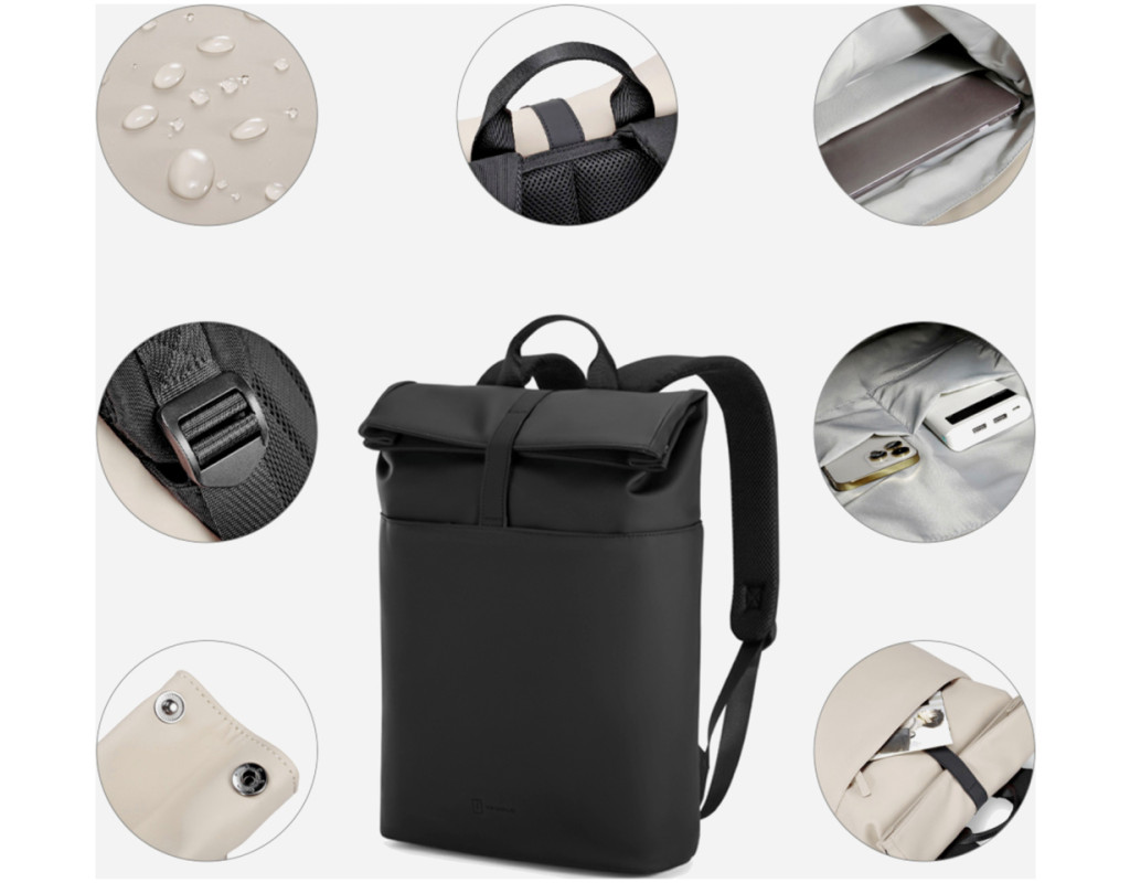 - У рюкзаку є: 1 велике відділення з відсіком для ноутбука 15,6" (стінки відділення мають додаткове ущільнення для захисту лептопа від ударів) і 2 внутрішні кишені для дрібних речей, смартфона або гаманця. Зовнішня кишеня на блискавці для дрібних речей, до яких потрібен швидкий доступ під час поїздок.