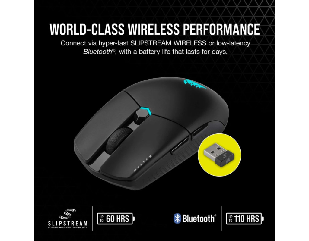 Corsair Katar Elite Wireless — це бездротова ігрова миша, створена для геймерів, які цінують швидкість, маневреність і точність. Завдяки надлегкій вазі всього 69 г вона забезпечує легкість рухів, що особливо важливо в інтенсивних ігрових битвах. Її компактна симетрична форма ідеально підходить для різних стилів хвата — як долонею, так і пальцями, надаючи максимум комфорту та контролю. Оснащена оптичним сенсором CORSAIR MARKSMAN, ця миша дозволяє досягти виняткової чіткості рухів. Його роздільна здатність до 26 000 DPI, прискорення до 50G і швидкість відстеження 650 IPS гарантують миттєву реакцію навіть на найнесподіваніші рухи. З таким сенсором ваш приціл завжди буде там, де ви цього хочете. Миша підтримує три режими підключення, надаючи вам повну свободу вибору: