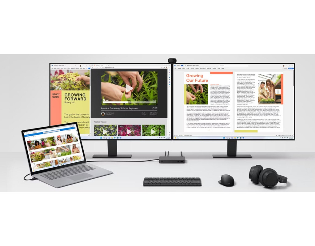 | Збільште продуктивність, підключивши кабель USB4Footnote/Thunderbolt 4 для живлення пристрою, підключіть до двох моніторів 4K на 60 Гц і передайте дані та файли зі швидкістю до 40 Гбіт/с — у чотири рази швидше, ніж USB 3. |