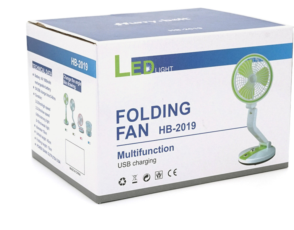 Портативний настільний вентилятор HB-2019, R*180мм, диммер, вбудований акумулятор 4V 1600mAh, USB кабель, Box