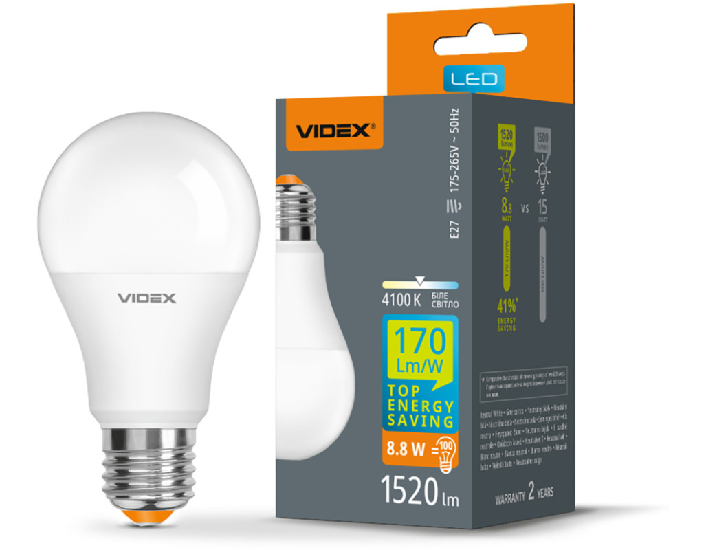 | LED лампа VIDEX A60h 8.8W E27 4100K (VL-A60h-88274) забезпечує рівний світловий потік і максимальну потужність з першої секунди роботи. Підходить для освітлення житлових і комерційних приміщень, офісів. Серія ламп VIDEX «H Series» – це в першу чергу про високоефективні лампи, які не тільки дозволять додатково заощаджувати на витратах електроенергії, але навіть у порівнянні зі звичайними світлодіодними лампами вони мають кращу світловіддачу і меншу потужність, тому будуть ефективнішими. Одна високоефективна LED лампа може замінити по яскравості освітлення декілька звичайних ламп! Особливості: