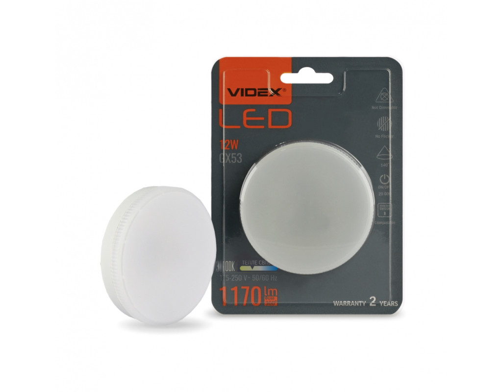 | LED лампа VIDEX GX53 12W 3000K 220V - це сучасне інноваційне рішення для освітлення вашого простору. Використовується в сучасних світильниках як для загального освітлення так і декоративного, інтер'єрного та акцентного. Це все залежить від дизайнерських та особистих смакових якостей споживача. З її потужністю 12W і яскравістю 1170 Lm, вона забезпечує якісне та яскраве світло, при цьому споживаючи мінімум енергії. Особливості: