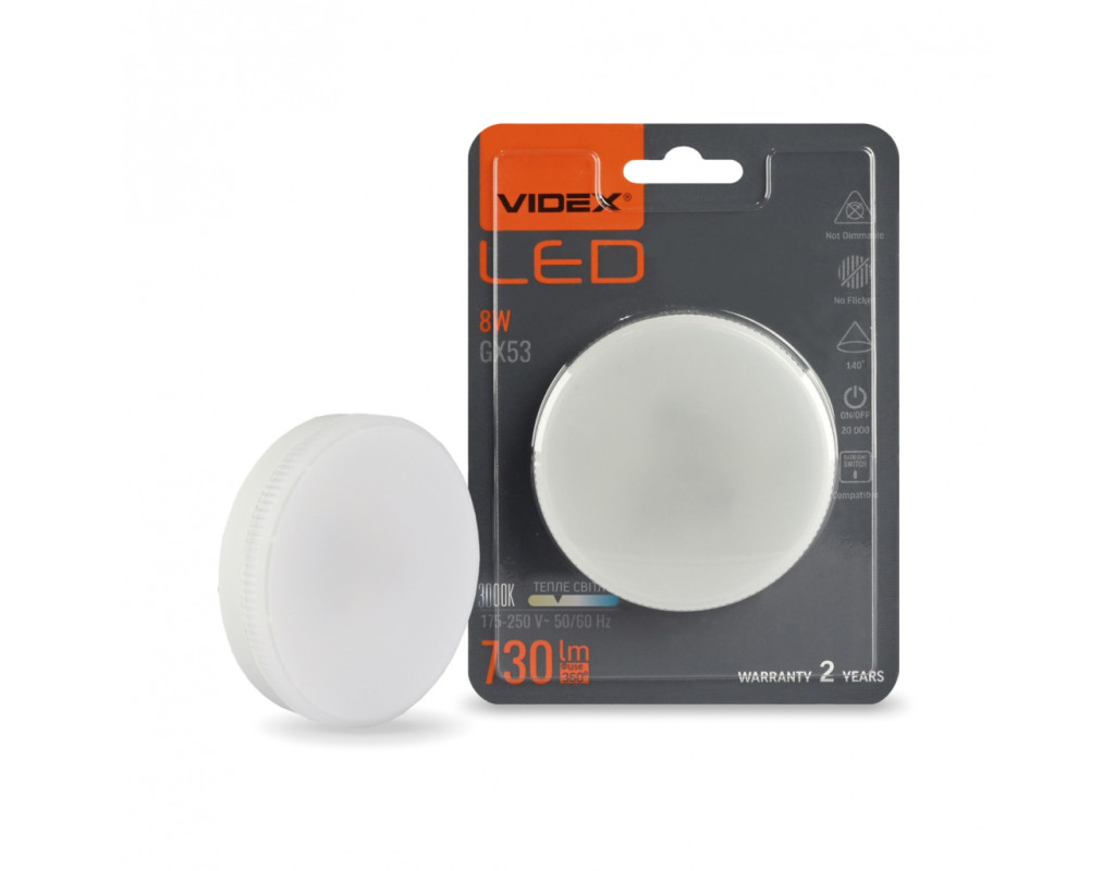 | LED лампа VIDEX GX53 8W 3000K 220V - це сучасне інноваційне рішення для освітлення вашого простору. Використовується в сучасних світильниках як для загального освітлення так і декоративного, інтер'єрного та акцентного. Це все залежить від дизайнерських та особистих смакових якостей споживача. З її потужністю 8W і яскравістю 730 Lm, вона забезпечує якісне та яскраве світло, при цьому споживаючи мінімум енергії. Особливості: