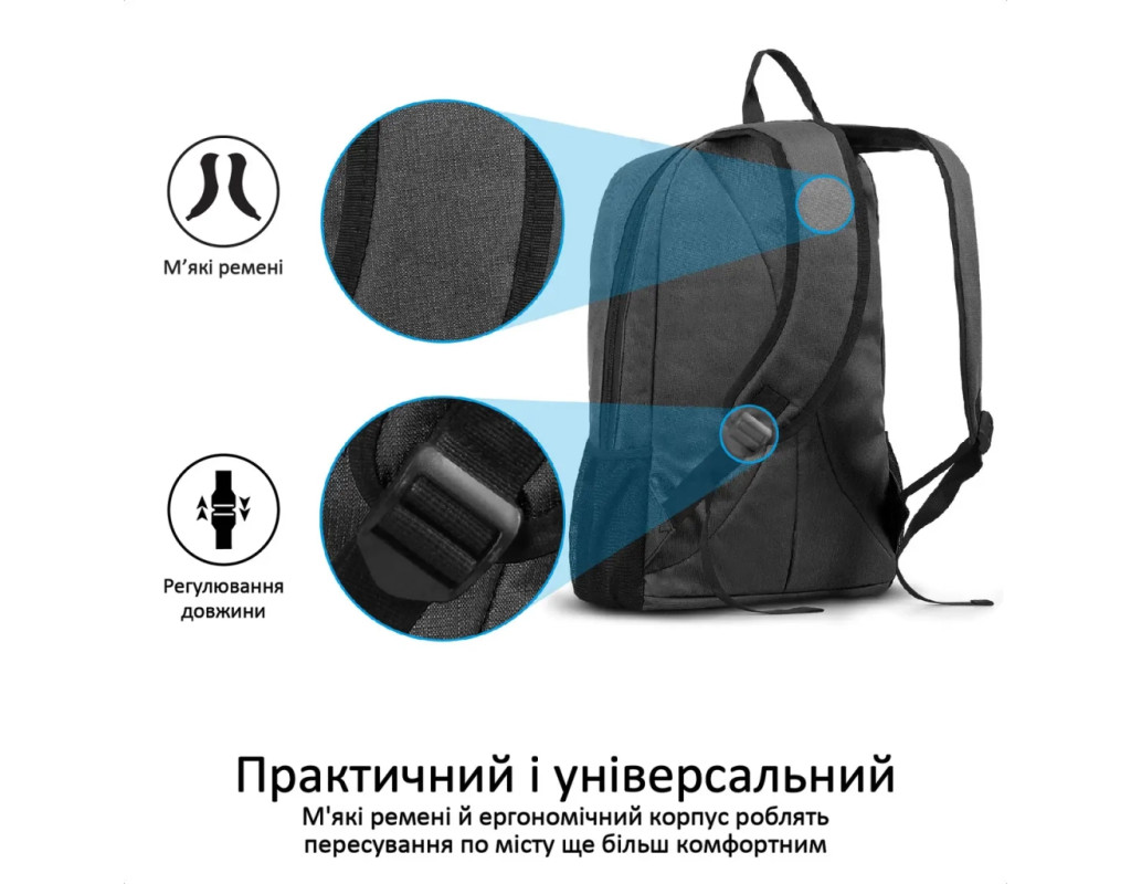Promate Alpha-BP — стильний і практичний рюкзак на кожен день. Легкий та функціональний супутник при пересуваннях в місті, який завжди за спиною. Особливості:
