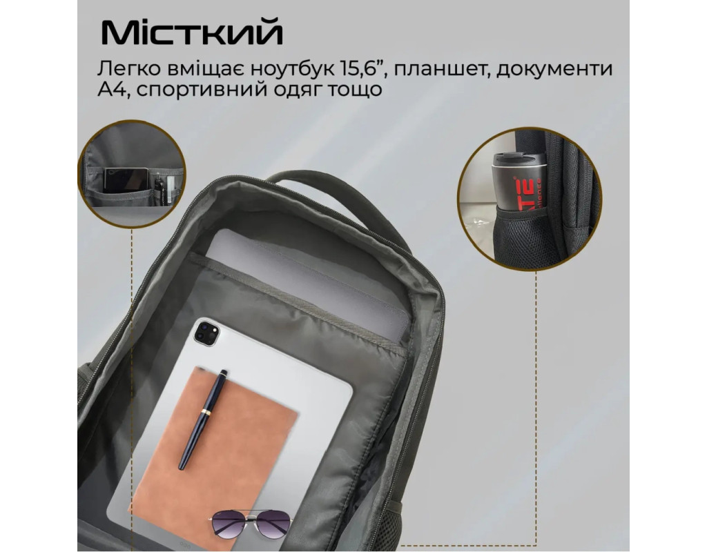 Promate ElitePack-Go - легкий і місткий рюкзак для ноутбука, який завдяки своїй практичній конструкції чудово підійде для повсякденного життя і подорожей. Особливості:
