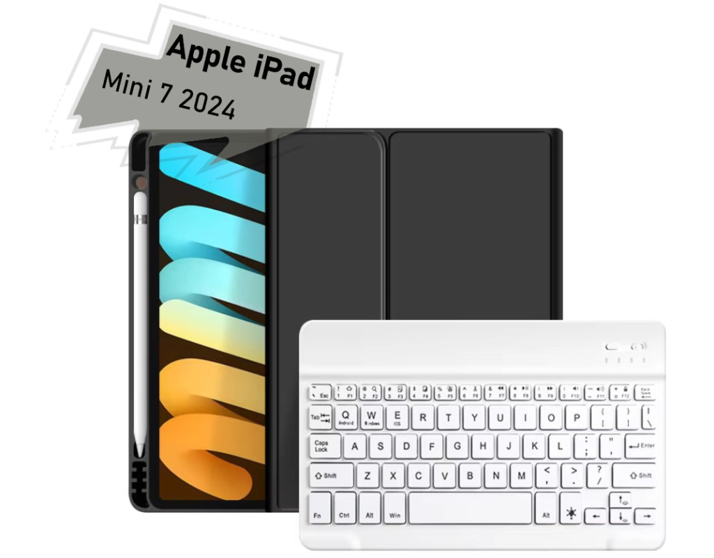 Тип - чохол-клавіатура, Сумісність з моделями - Apple iPad Mini 7 2024, Спосіб кріплення - обкладинка, спосіб закриття - магніт, Матеріал - термополіуретан, пластик, чорний