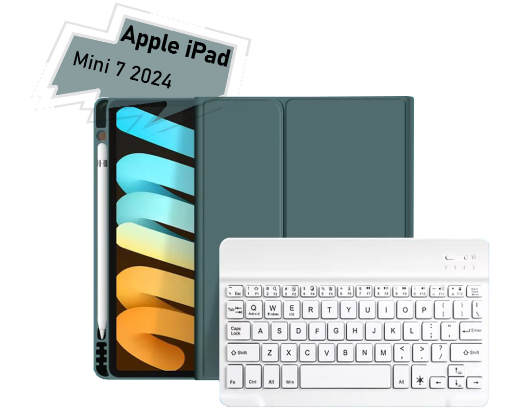 Тип - чохол-клавіатура, Сумісність з моделями - Apple iPad Mini 7 2024, Спосіб кріплення - обкладинка, спосіб закриття - магніт, Матеріал - термополіуретан, пластик, темно-зелений