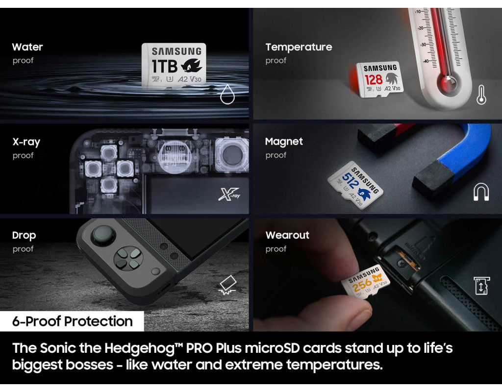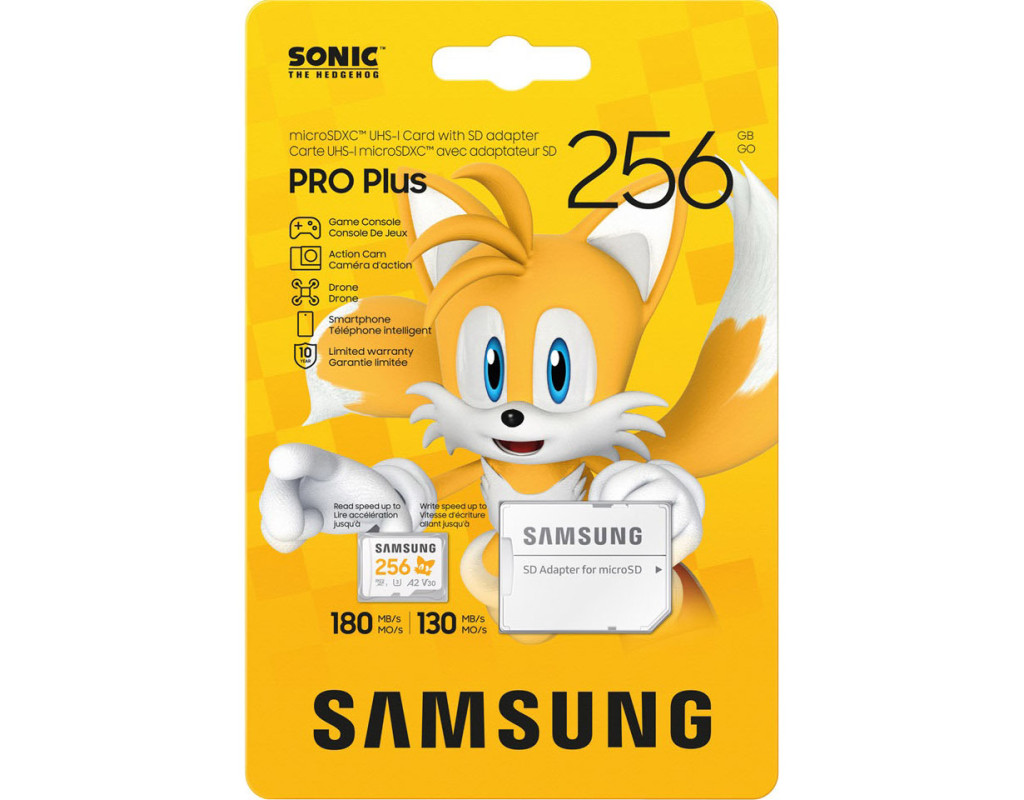 | Sonic Speed Відчуйте швидкість Sonic зі швидкістю послідовного читання до 180 МБ/с - насолоджуйтеся швидким завантаженням і плавною роботою в іграх на кінчиках ваших пальців. Просторе сховищеДостатньо місця для ваших епічних ігор і творчих проектів - до 1 ТБ пам'яті. Дизайн SonicВізьміть Соніка додому з картами пам'яті microSD Sonic the Hedgehog Pro Plus. Поповніть свою колекцію фігурками Тіні, Хвоста та Кісточок. Заряджайтеся зі швидкістю СонікаПідвищуйте свою продуктивність з неймовірно швидкими картами пам'яті Sonic the Hedgehog Pro Plus microSD. Прискорте свої пригодиШвидкість читання/запису до 180/130 МБ/с. Швидше завантажуйте та швидше грайте. Завдяки швидкості читання і запису до 180 МБ/с і 130 МБ/с ви зможете швидко пробігатися по екранах завантаження і швидко перемикатися між іграми. Місце для кожної пригодиОб'єм пам'яті від 128 ГБ до 1 ТБ. Збільште свою ігрову бібліотеку за допомогою широкого спектру можливостей зберігання - від 128 ГБ до 1 ТБ, включаючи файли високої роздільної здатності, фотографії та відео у форматі 4K. Створений, щоб працювати на всьомуШирока сумісність. Соник і всі його друзі підтримують все, що ви робите, на всіх ваших пристроях. Від портативних ігрових консолей до екшн-камер і дронів - ця карта SDXC для кількох пристроїв допоможе вам у ваших пригодах. До всіх карт пам'яті Sonic the Hedgehog Pro Plus microSD додається повнорозмірний адаптер SD. Подовження терміну служби карти пам'ятіПрограмне забезпечення Magician. Програмне забезпечення Samsung Magician допоможе вам розкрити нестримну продуктивність карт пам'яті Sonic the Hedgehog Pro Plus microSD. Воно включає в себе перевірку автентичності продукту, моніторинг стану накопичувача та тестування продуктивності. |