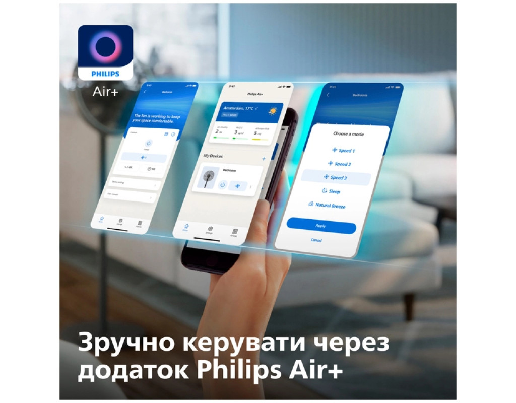 Режим “Природній бриз” Імітує потік свіжого повітря: інтенсивність і швидкість повітря плавно змінюється від високого до низького, створюючи природне та підбадьорливе відчуття в приміщенні, яким можна насолоджуватися цілий рік. Ультра тихий — тихіше шепоту Лише 19 дБ*У порівнянні зі звичайними лопатями вентилятора. Заощадження електроенергії Наш вентилятор дає змогу підвищити температуру термостата на вашому кондиціонері до 7 градусів, зберігаючи той самий рівень комфорту. Споживаючи лише 48 Вт енергії, він споживає менше енергії, ніж звичайна лампочка. Прохолодний і спокійний сон Цей режим поступово зменшує швидкість вентилятора до найнижчого значення протягом 30 хвилин, допомагаючи вам заснути природним чином, а також зберігаючи енергію. |