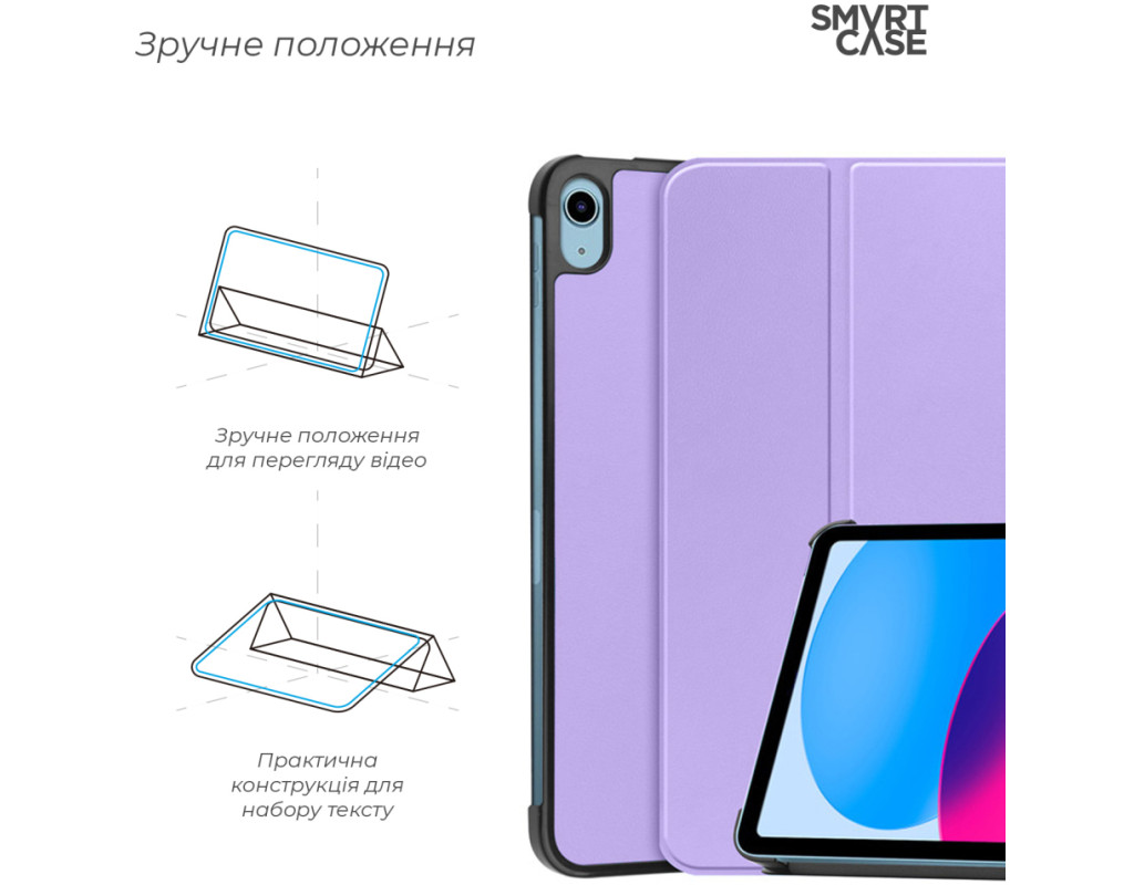 Тип - обкладинка, Сумісність з моделями - Apple iPad 10.9 2022, Apple iPad 10.9 2024, Apple iPad 11" 2025, діагональ - 10.9, Спосіб кріплення - рамка-тримач, спосіб закриття - магніт, Матеріал - термополіуретан, лавандовий