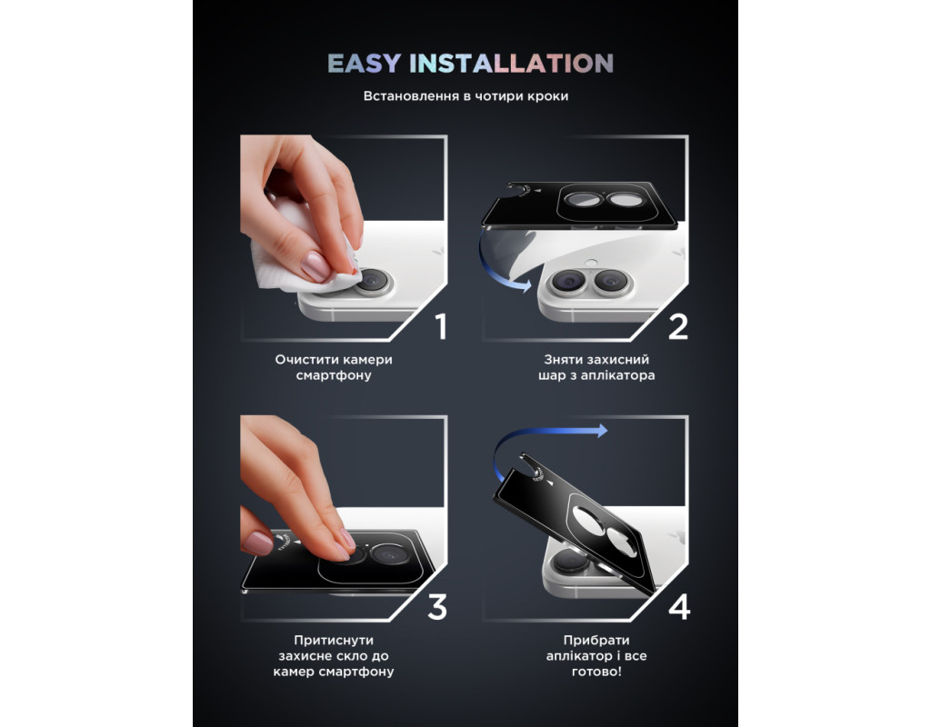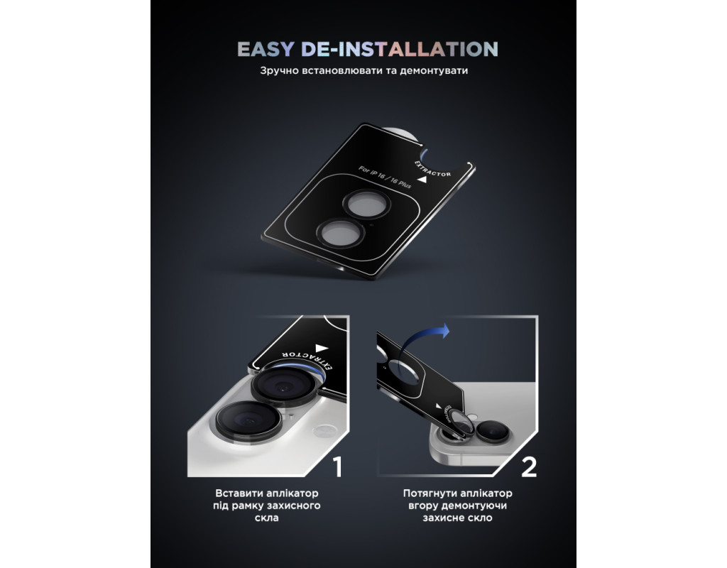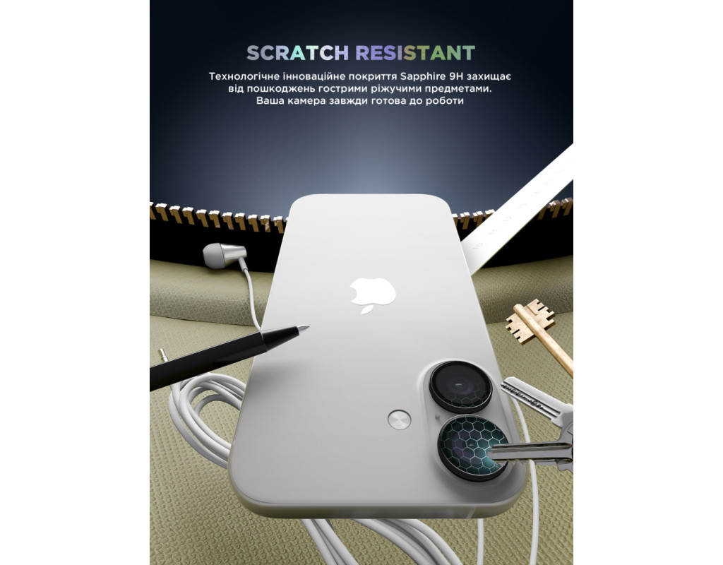 Призначення - для камери телефона, Вид покриття - глянсове, Сумісність з моделями - Apple iPhone 16e, Кількість в упаковці - 1 шт