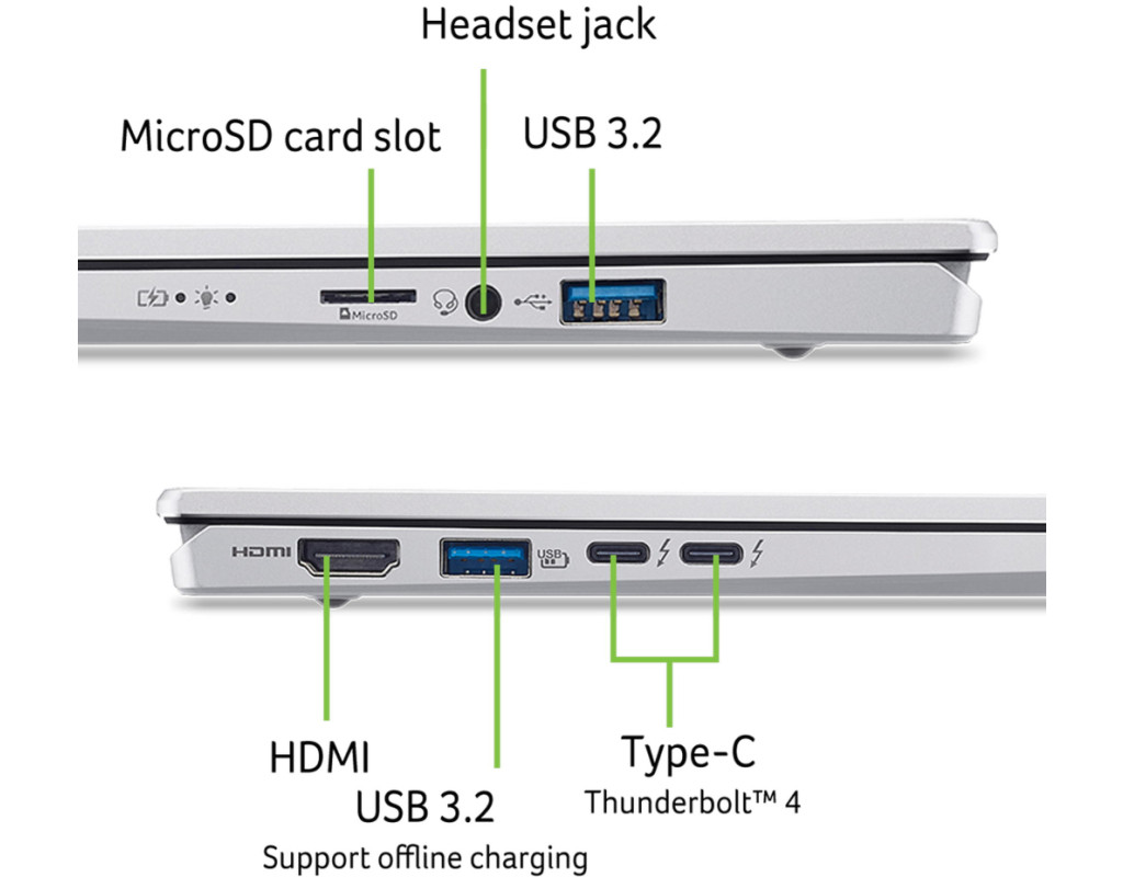 Acer Swift Go 14 SFG14-74 — сучасний ультрабук, створений для тих, хто цінує поєднання продуктивності, портативності та інноваційних технологій. Оснащений можливостями штучного інтелекту, пропонує користувачам універсальне рішення для роботи, навчання чи творчих завдань. Однією з ключових особливостей Acer Swift Go 14 є його 14-дюймовий OLED-дисплей з роздільною здатністю до 1920×1200. Екран підтримує частоту оновлення 60 Гц, що забезпечує плавне відображення динамічних сцен. Широкий колірний обхват 100% DCI-P3 робить дисплей ідеальним для редагування фото чи відео, а співвідношення сторін 16:10 забезпечує більше простору для роботи з документами чи вебсторінками. Технологія TUF зменшує синє випромінювання, що робить перегляд комфортним навіть під час тривалої роботи. Чудову продуктивність й швидкодію системи забезпечить поєднання основного процесора Intel Core Ultra та вбудованого драйвера Intel AI Boost, призначеного для більш інтуїтивно зрозумілої та приємної роботи зі штучним інтелектом. Завантажувати масштабні файли, зберігати великий обсяг інформації й працювати в режимі багатозадачності буде легко зі швидкою оперативною пам'яттю DDR5 та містким SSD-накопичувачем. Пориньте в яскраві візуальні ефекти завдяки відеокарті Intel Arc з технологією масштабування XeSS з підтримкою ШІ, що забезпечує плавну зміну кадрів і відтворення мультимедіа. Для підключення та мультимедійних можливостей Swift Go 14 пропонує широкий набір інтерфейсів і функцій. Порти USB Type-A і USB4 дозволяють підключати зовнішні монітори чи накопичувачі, а HDMI забезпечує сумісність із сучасними дисплеями. WiFi 802.11ax і стандарт Bluetooth гарантують швидке та стабільне з’єднання. Вебкамера QHD із технологією PurifiedVoice забезпечує чітке зображення та чистий звук під час відеоконференцій, а шторка конфіденційності додає додатковий рівень безпеки. Аудіосистема з підтримкою DTS:X Ultra забезпечує об’ємний звук, що робить ноутбук універсальним для роботи та розваг. Acer Swift Go 14 SFG14-74 — це ідеальний вибір для тих, хто шукає потужний, портативний і стильний ноутбук із передовими технологіями для продуктивної роботи та творчості. |