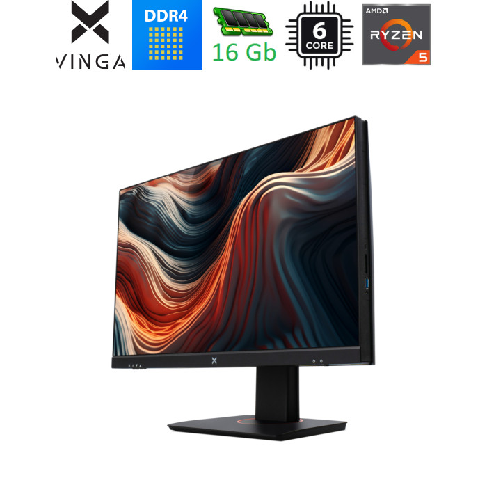 Ідеальний вибір для роботи та навчання Комп'ютер Vinga AIO Advanced C0161 створений для тих, хто цінує продуктивність, стиль та функціональність. Це моноблок нового покоління, який поєднує в собі потужний процесор, високоякісний екран та багатофункціональні можливості підключення. Завдяки своєму формату, він є ідеальним вибором для офісу, навчання вдома чи використання у якості мультимедійного центру. Високоякісний екран для кращого візуального досвіду Обладнаний 24-дюймовим дисплеєм із високоякісною IPS матрицею, цей моноблок гарантує чіткість та насиченість зображень. Максимальна роздільна здатність 1920 x 1080 (Full HD) забезпечує деталізованість зображення, а частота оновлення 75 Гц та час реакції матриці всього у 4 мс дозволяють насолоджуватися плавним відтворенням будь-якого контенту. Екран підтримує можливість регулювання по висоті, повороту (Swivel і Pivot) та нахилу, що робить перегляд більш зручним з будь-якого кута. Потужність, яка вражає З точки зору продуктивності, цей моноблок не має собі рівних. Він оснащений процесором AMD Ryzen 5 5600G із шістьма ядрами та дванадцятьма потоками, що забезпечує високу швидкість обробки даних та підтримку сучасних програм. Основна частота процесора становить 3.9 ГГц, але в режимі Boost вона зростає до вражаючих 4.4 ГГц, дозволяючи без затримки виконувати найскладніші завдання. Чіпсет AMD A520 забезпечує стабільність роботи системи та оптимізує взаємодію між компонентами. Графіка та пам'ять на вищому рівні Вбудована графіка Radeon Graphics разом з оперативною пам'яттю об'ємом 16 ГБ типу DDR4 із частотою 3200 МГц забезпечують плавність графічного інтерфейсу та швидку обробку даних. Це дозволяє працювати з графічними програмами, переглядати відео високої якості або грати в кежуал ігри без збоїв. Обсяг SSD накопичувача в 1 ТБ забезпечить достатньо місця для зберігання даних та швидкий доступ до них. Багатство підключень та зручність використання Моноблок Vinga AIO Advanced C0161 пропонує широкі можливості підключення. Завдяки 4 x USB 2.0, 2 x USB 3.2 Gen1 Type A, USB Type-C та іншими портами ви зможете легко підключати всі необхідні пристрої. Вбудована підтримка бездротових технологій Wi-Fi (802.11ac) та Bluetooth 4.2 дає змогу зручно підключатися до мережі та бездротових аксесуарів. Вбудована мультимедіа Для проведення відеоконференцій чи розважальних цілей моноблок оснащений вбудованою 2Мп камерою, мікрофоном та динаміками потужністю 2 x 3 Вт. Це дозволяє не лише працювати, але й спілкуватися онлайн без додаткових пристроїв. Стильний дизайн та можливість кріплення Моноблок оформлений в сучасному стильному дизайні, який вдало доповнить інтер'єр вашої робочої зони. Завдяки можливості кріплення VESA, цей комп'ютер легко інтегрувати у ваш робочий простір, закріпивши його на стіні. Енергоефективність та надійність Потужність блоку живлення 300 Вт гарантує економічне споживання енергії без втрати продуктивності, роблячи моноблок не лише потужним, але й економічним у використанні. Сучасна операційна система Моноблок оснащений найсучаснішою операційною системою Windows 11 Home, вона гарантує безпомилкову та швидку інтеграцію з новітніми програмами та сервісами, підтримуючи вашу продуктивність на високому рівні. Обравши Vinga AIO Advanced C0161, ви отримаєте універсальний інструмент, що поєднує в собі високу продуктивність, якість та зручність, необхідні для сучасного світу. Цей монобл